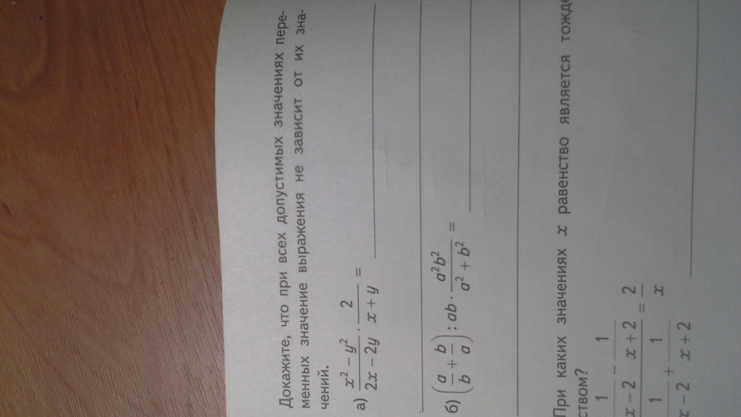 2)в первой скобке будет a^2+b^2/ab и это делим на ab ,будет a^2+b^2/a^2b^2,затем числитель и знаменатель все сокращаетсч и получается ответ 1