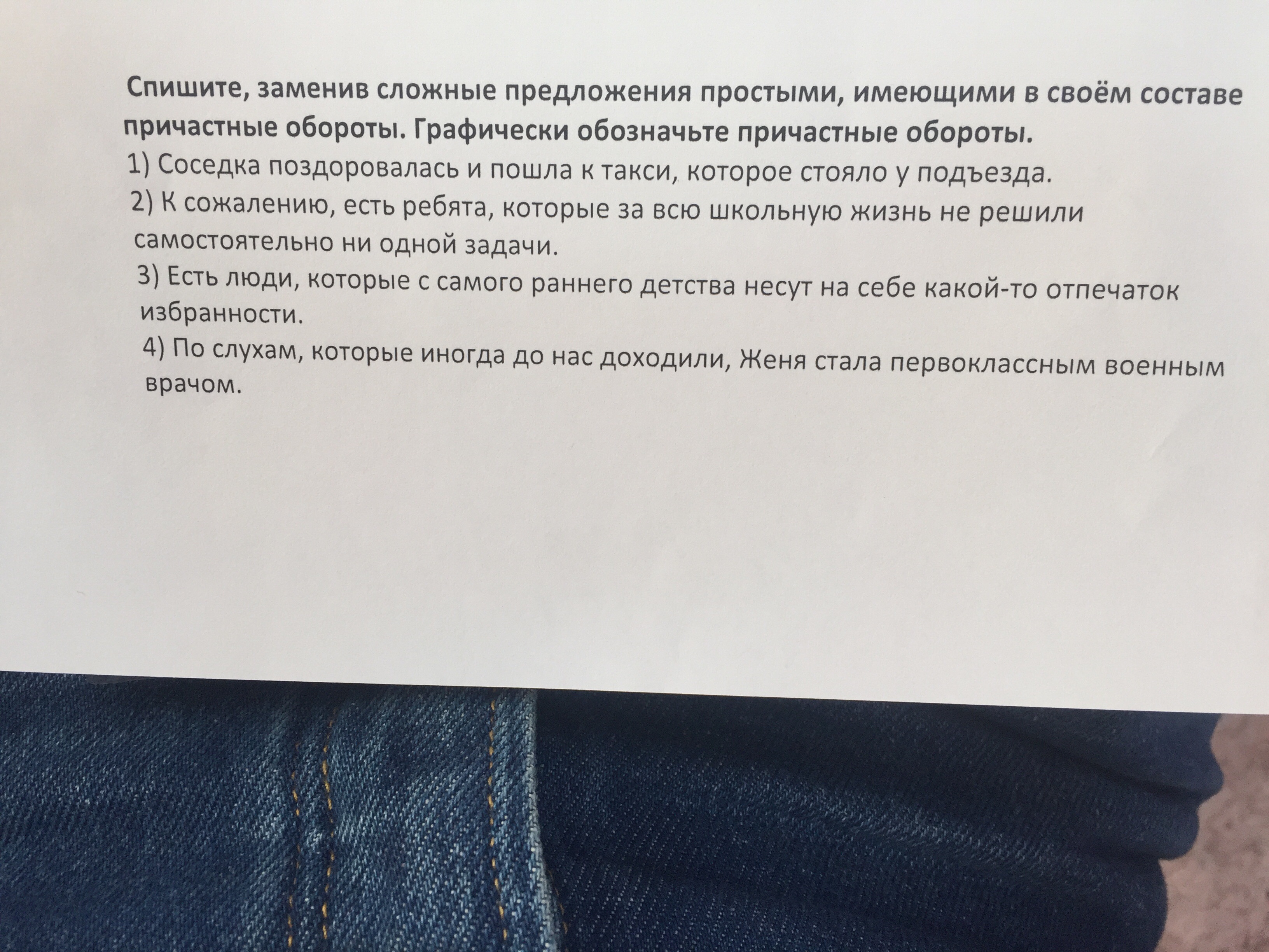 Спишите, заменив сложные предложения простыми, имеющими в своём составе причастные обороты. Графически обозначьте причастные обороты.