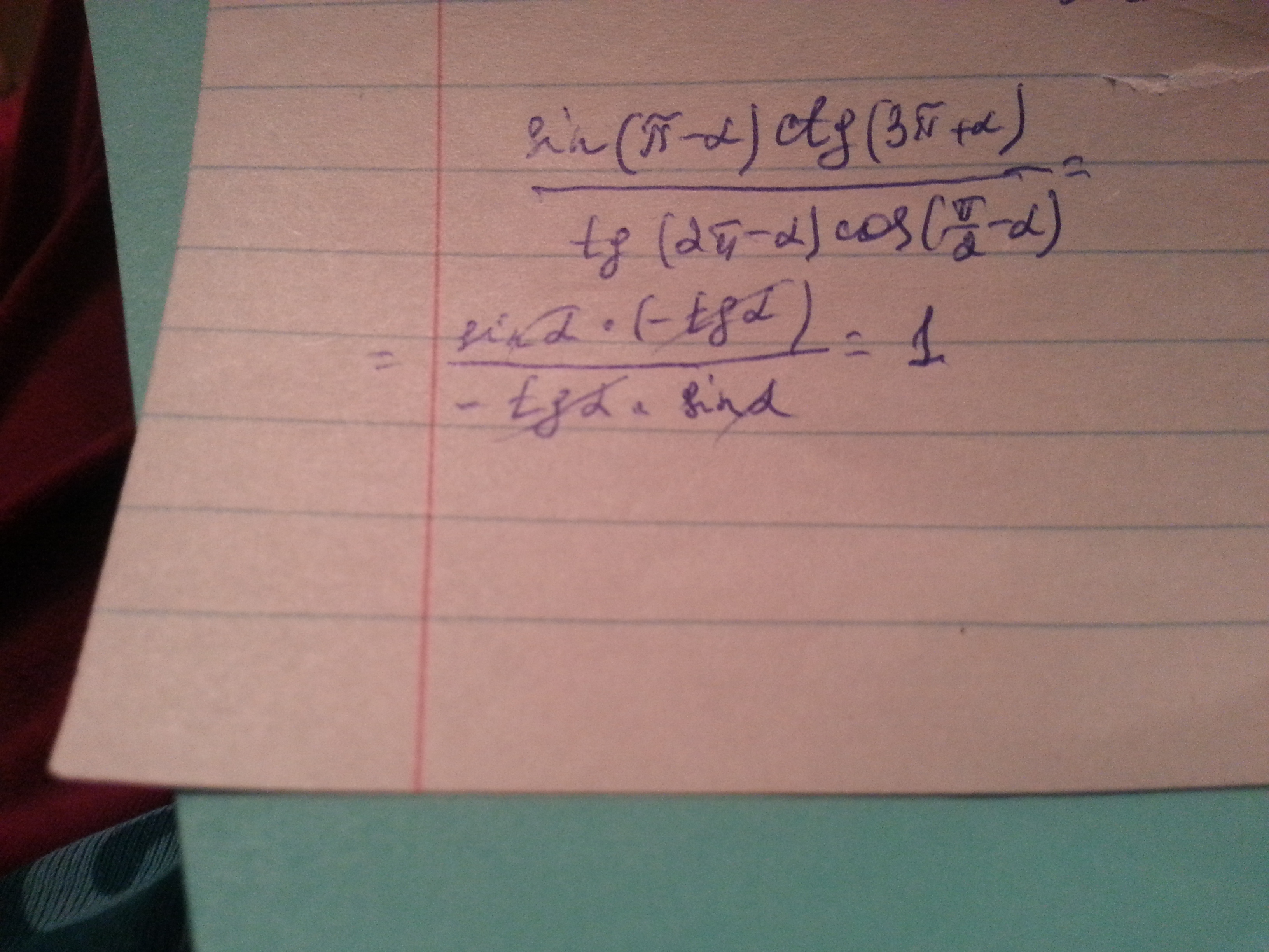Sin(П-a)ctg(3п/2+a)/tg(2п-a)cos(п/ 2-a)