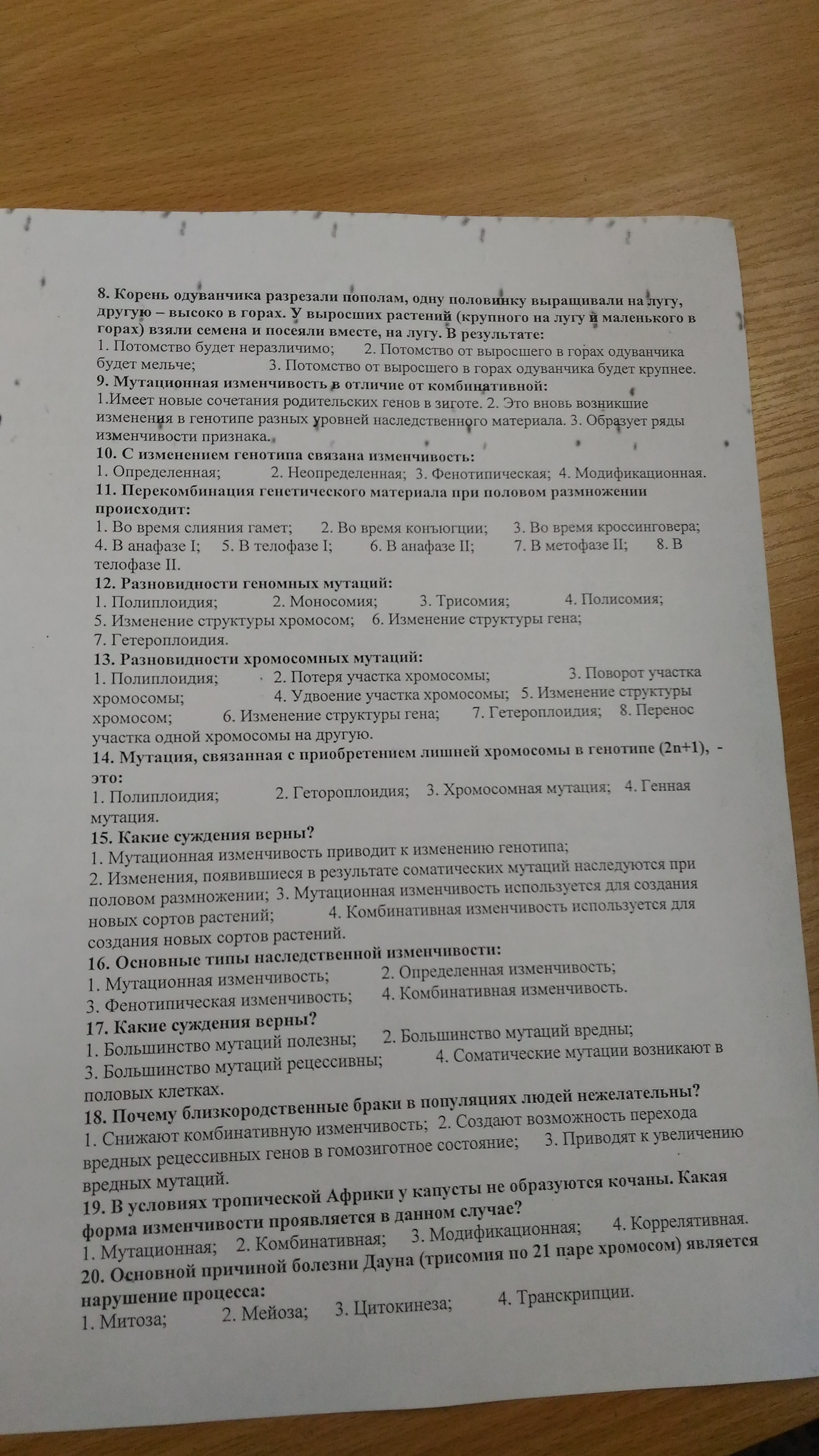 Изменчивость организмов проявляется в разнообразии особей (одного вида, породы или сорта), отличающихся друг от друга по комплексу признаков, свойств и качеств. Причины тому могут быть разными. В одних случаях данные различия (при одинаковых генотипах у организмов) определяются условиями среды, в которых происходит развитие особей. В других — различия обусловлены неодинаковыми генотипами организмов. На основании этого выделяют два типа изменчивости: ненаследственную(модификационную, фенотипическую) и наследственную(генотипическую).Модификационная (фенотипическая) изменчивость заключается в том, что под действием разных условий внешней среды у организмов одного вида, генотипически одинаковых, наблюдается изменение признаков (фенотипа). Изменения эти индивидуальны и не наследуются, т. е. не передаются особям следующих поколений. Рассмотрим проявление подобной закономерности на нескольких примерах.В одном из опытов корневище одуванчика разрезали вдоль острой бритвой и высадили половинки в разных условиях — в низине и в горах. К концу сезона из этих проростков выросли совершенно не похожие друг на друга растения. Первое из них (в низине) было высоким, с большими листьями и крупным цветком. Второе, выросшее в горах, в суровых условиях, оказалось низкорослым, с мелкими листьями и цветком Генотип у этих двух растений абсолютно идентичен (ведь они выросли из половинок одного корневища), но их фенотипы существенно различались в результате разных условий произрастания. Потомки этих двух растений, выращенные в одинаковых условиях, ничем не отличались друг от друга. Следовательно, фенотипические изменения не наследуются.Биологическое значение модификационной изменчивости заключается в обеспечении индивидуальной приспособляемости организма к различным условиям внешней среды.Рассмотрим другой пример. Представим себе, что два брата, однояйцовых близнеца (т. е. с идентичными генотипами) выбрали еще в детстве разные увлечения: один посвятил себя тяжелой атлетике, а другой — игре на скрипке. Очевидно, через десяток лет между ними будет наблюдаться существенное физическое различие. И также ясно, что у спортсмена его новорожденный сын не родится с «атлетическими» признаками.Изменения фенотипа под воздействием условий внешней среды могут происходить не беспредельно, а только в ограниченном диапазоне (широком или узком), который обусловлен генотипом. Диапазон, в пределах которого признак может изменяться, носит название нормы реакции. Так, например, признаки у коров, учитываемые в животноводстве, — удойность (т. е. количество вырабатываемого молока) и жирность молока — могут изменяться, но в разных пределах. В зависимости от условий содержания и кормления животных удойность варьируется существенно (от стаканов до нескольких ведер в сутки). В данном случае говорят о широкой норме реакции. А вот жирность молока очень незначительно колеблется в зависимости от условий содержания (всего на сотые доли процента), т. е. этот признак характеризуется узкой нормой реакции.Итак, условия внешней среды обусловливают изменения признака в пределах нормы реакции. Границы же последней продиктованы генотипом. Следовательно, изменения самой нормы реакции могут произойти только в результате изменения генотипа (т. е. в результате генотипичес