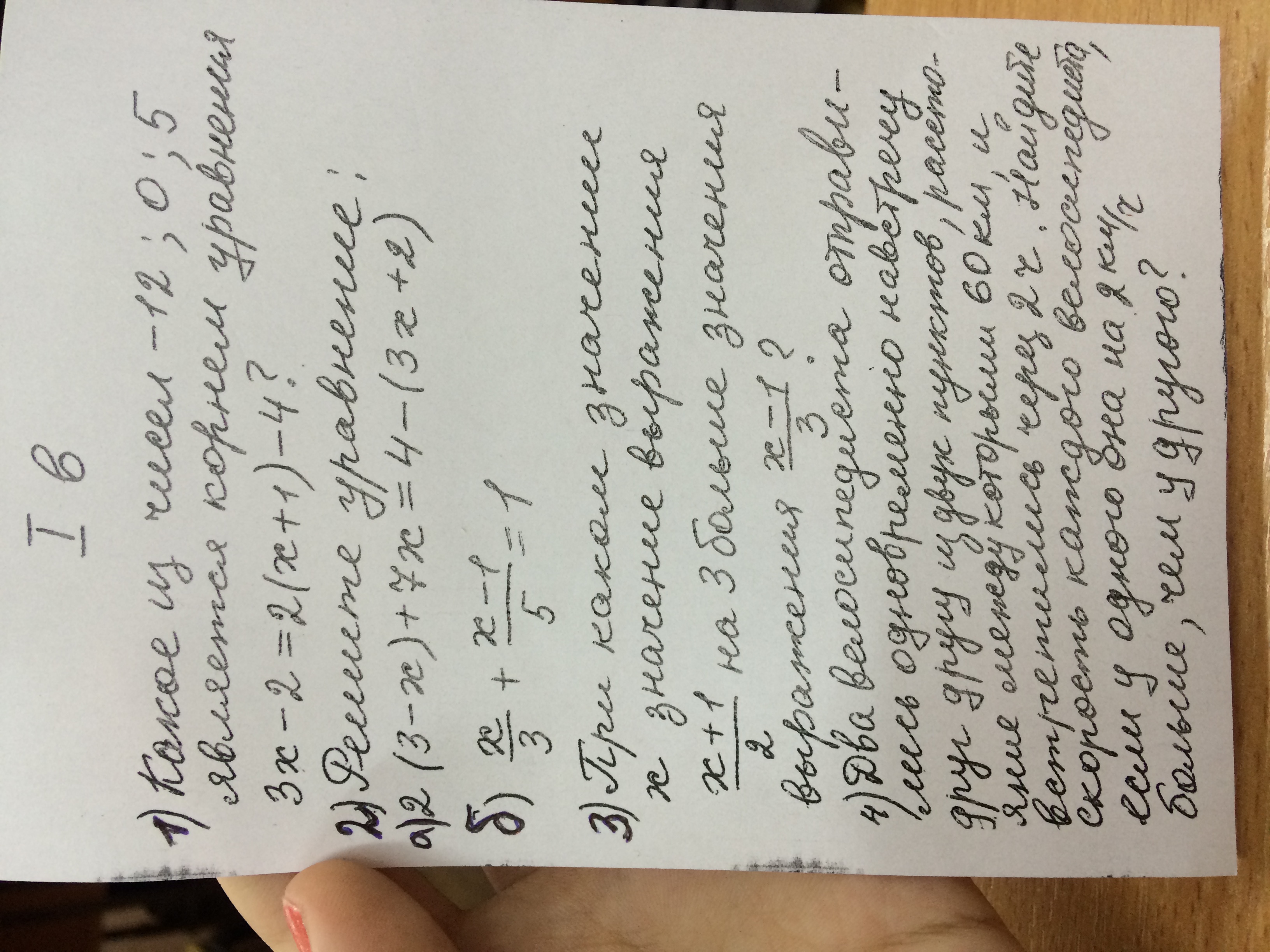 2(3-х)+7х=4-(3х+2)