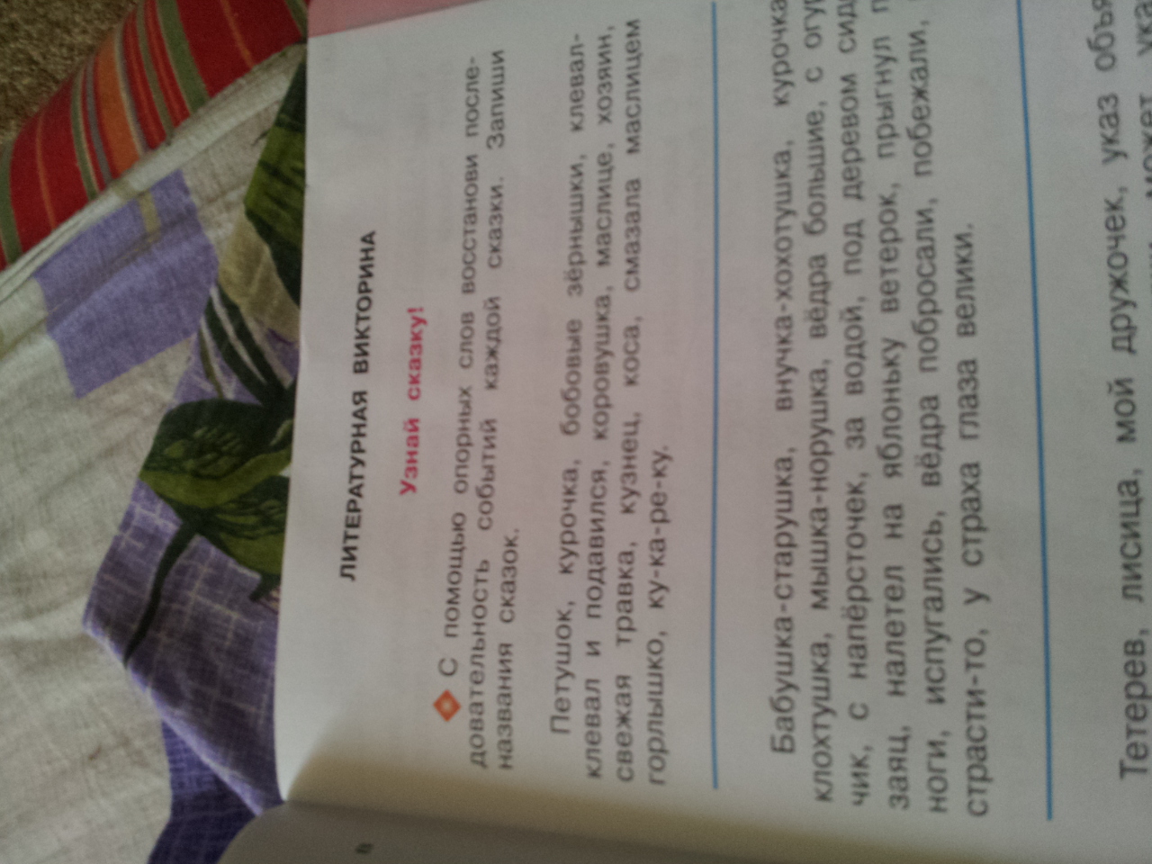 с помощью опорных слов восстанови последовательность событий каждой сказки запиши названия сказок.