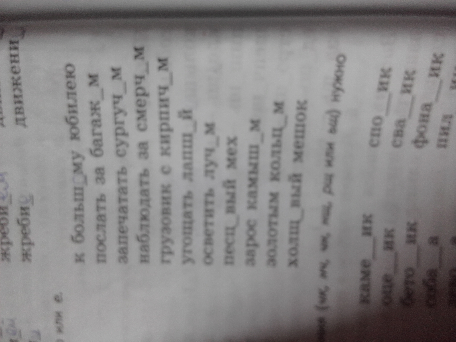 к большому, за багажом, сургучом, за смерчем, с кирпичом, лапшой, лучом, песцовый, камышом, кольцом, холщовый.