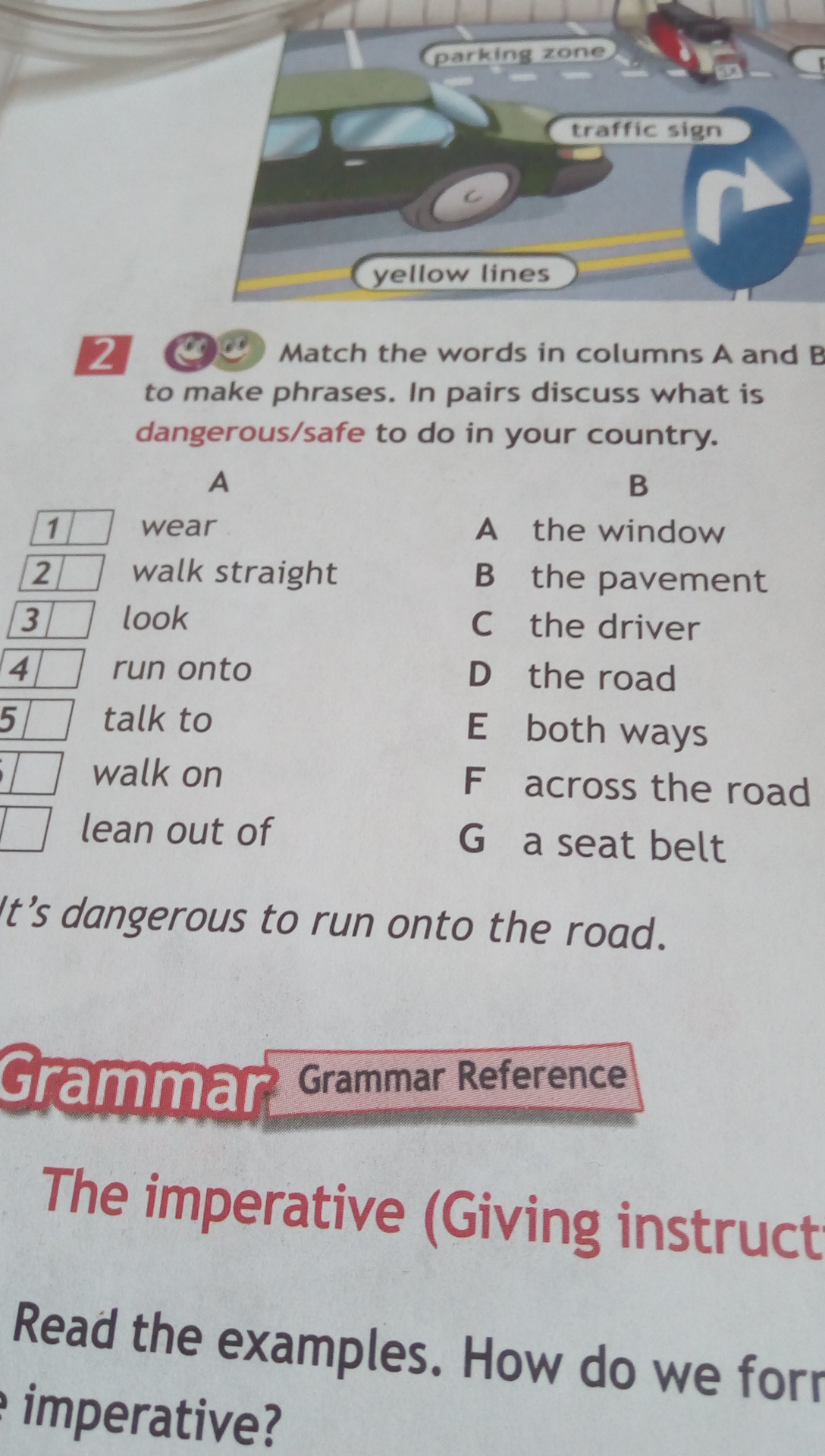 Match the words in columns A and B to make phrases. In pairs discuss what is dangerous/safe to do in your country.