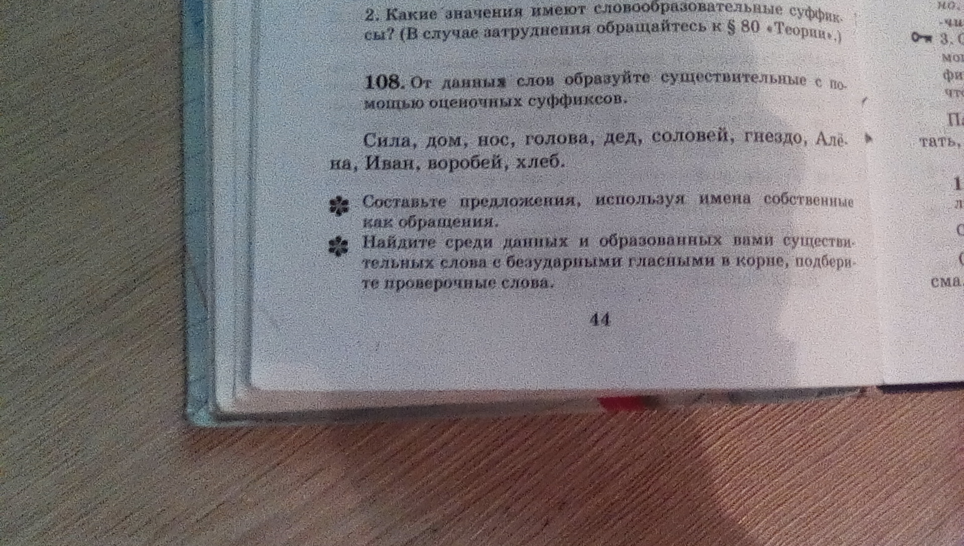 помогите пож на завтра)) номер 108 составить предложение используя имена как обращение.найди среди дынных и образованных вами сущ слова с безударными гласными в корне,подбери проверочные слова.