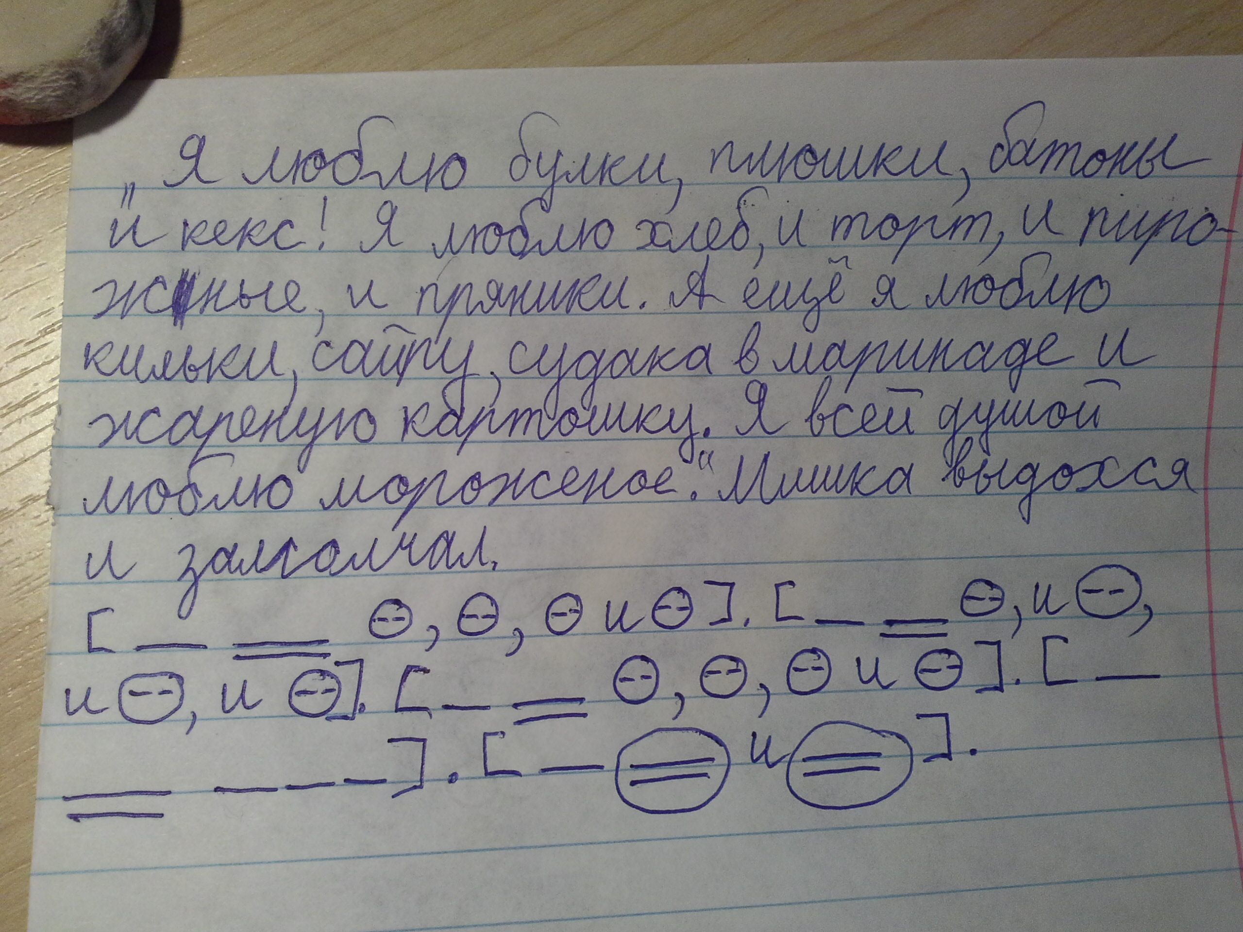 Спиши предложения ,расставь,где это нужно,запятые.Составь схему каждого предложения: -Я люблю булки плюшки батоны и кекс! Я люблю хлеб и торт и пирожные и пряники.А ещё я люблю кильки сайру судака в маринаде и жареную картошку.Я всей душой люблю мороженое. Мишка выдохся и замолчал.