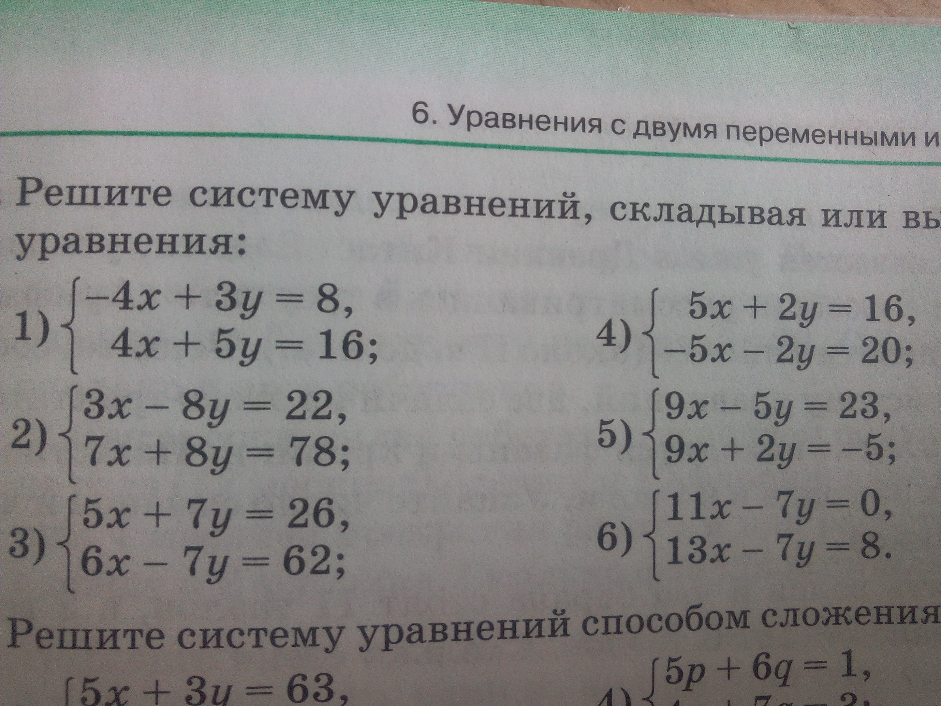 из одного уравнения складывается или вычитаешь другое так чтоб х был равно 0 потом остается у и решаешь после этого представляешь у и находишь х)