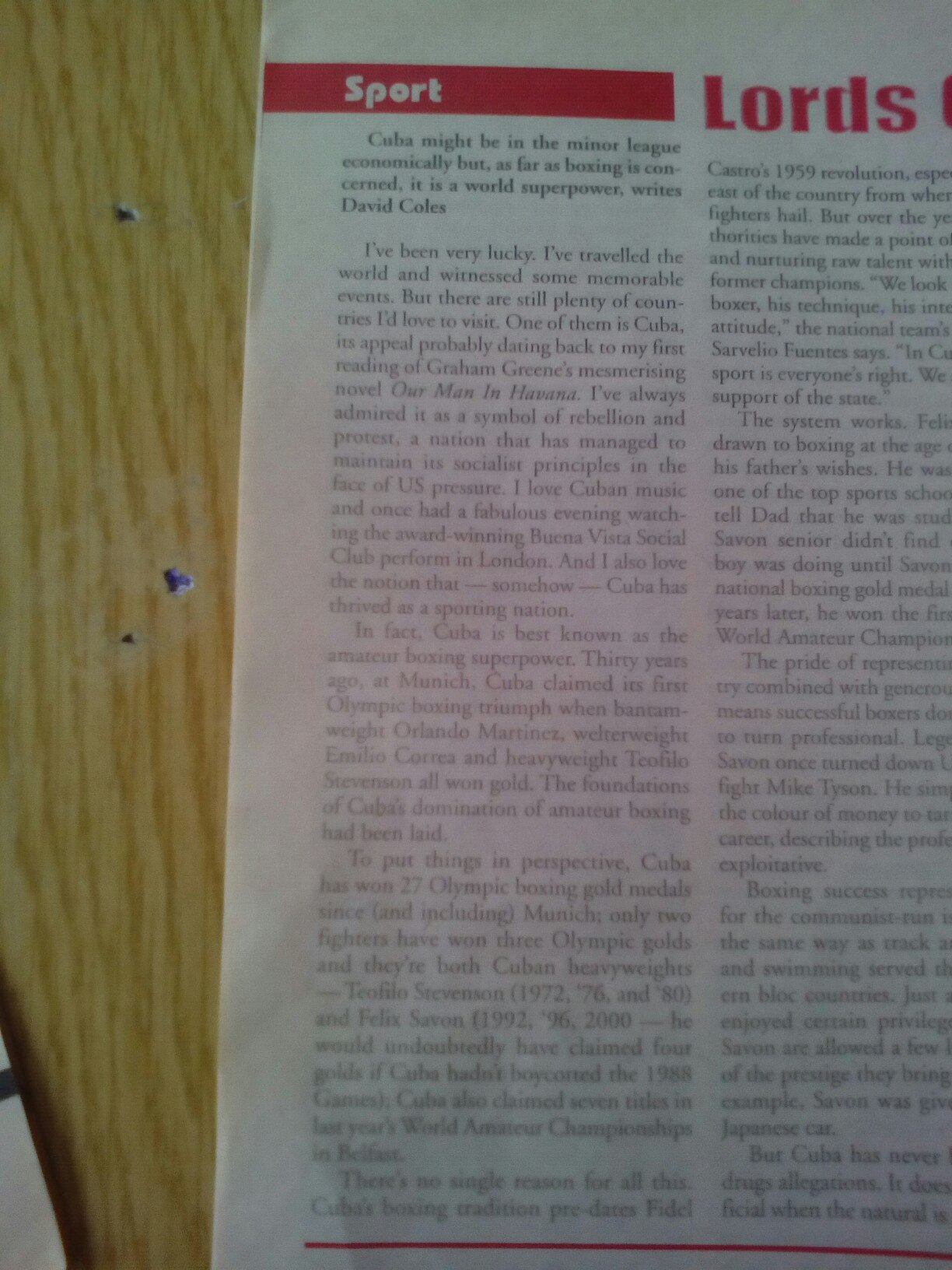 Куба может быть в низшей экономической лиге,но пока они заинтересованны в боксе,это мировая сверхдержава(супер сила) пишет Дэвид Колс.