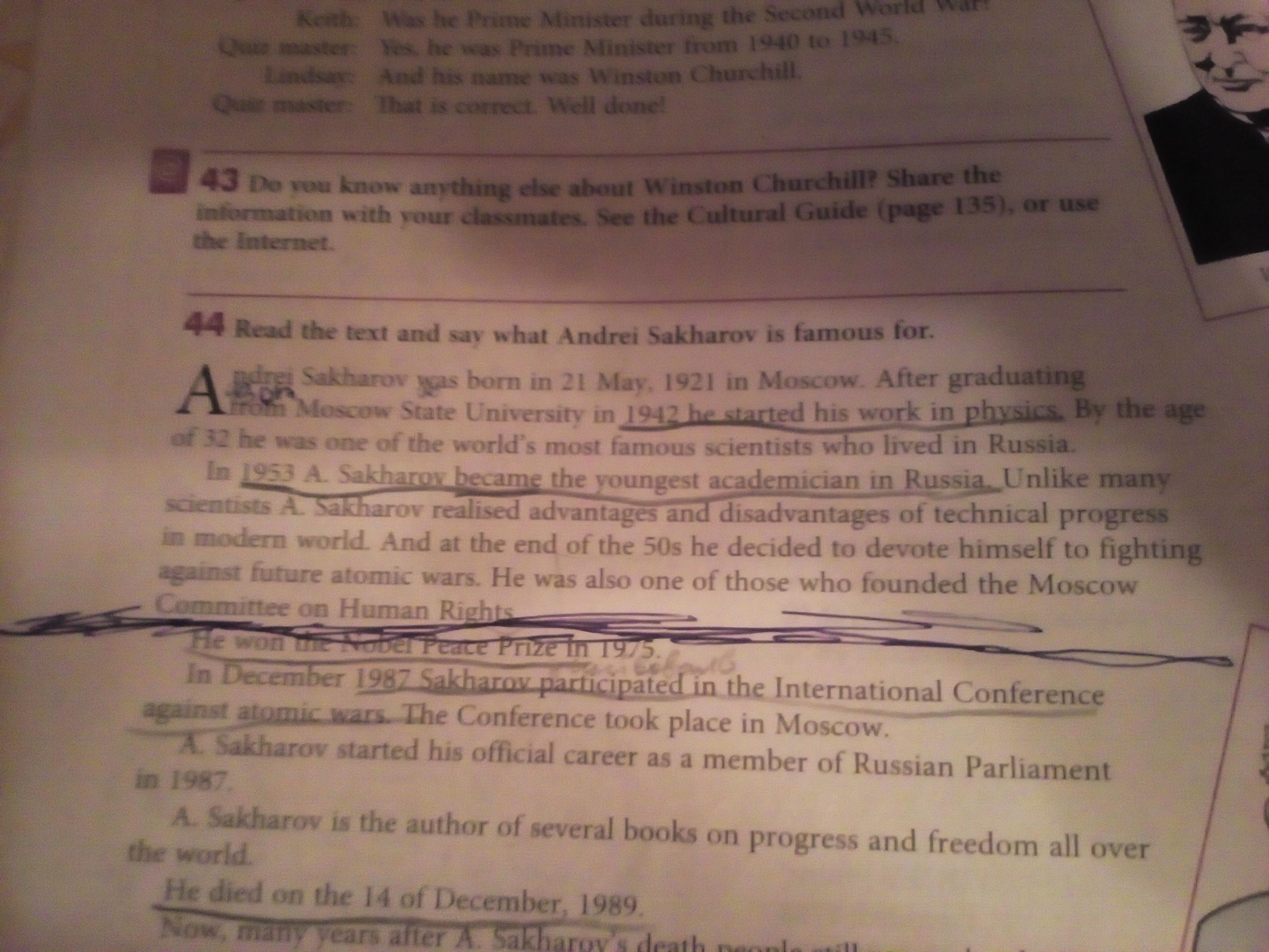 Андрей Сахаров родился 21 мая, 1921 года в Москве. После окончания Московского Государственного Университета в 1942 году он начал работать с физикой. К 32 годам он стал одним из самых знаменитых ученых мира, кто жил в России.