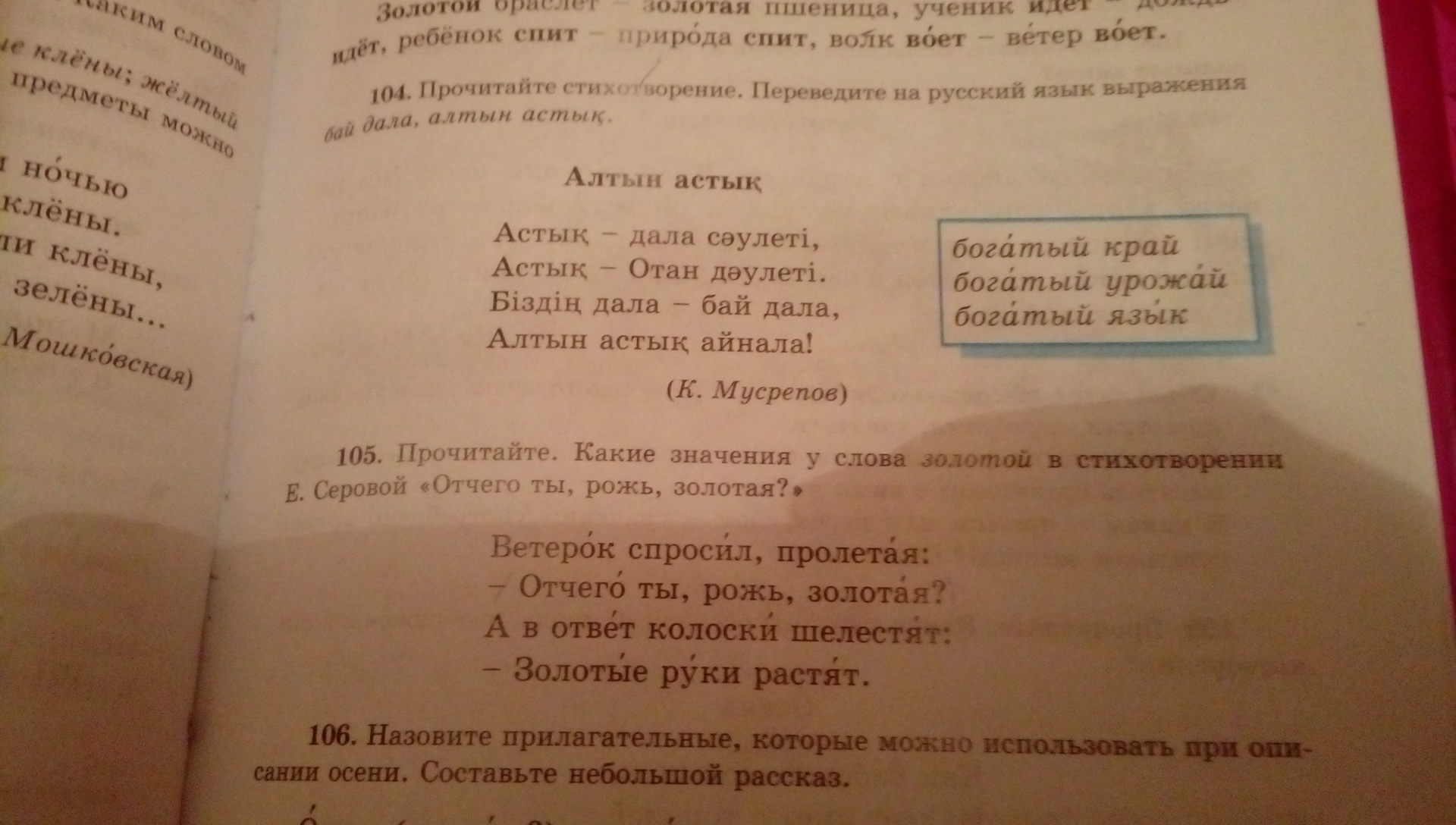 первое слово золотая- это цвет ржи, такой желтый-желтый. а второе слово золотые- это такое есть выражение- золотые руки, это как бы руки мастера своего дела, человека который очень хорош в том, что он делает