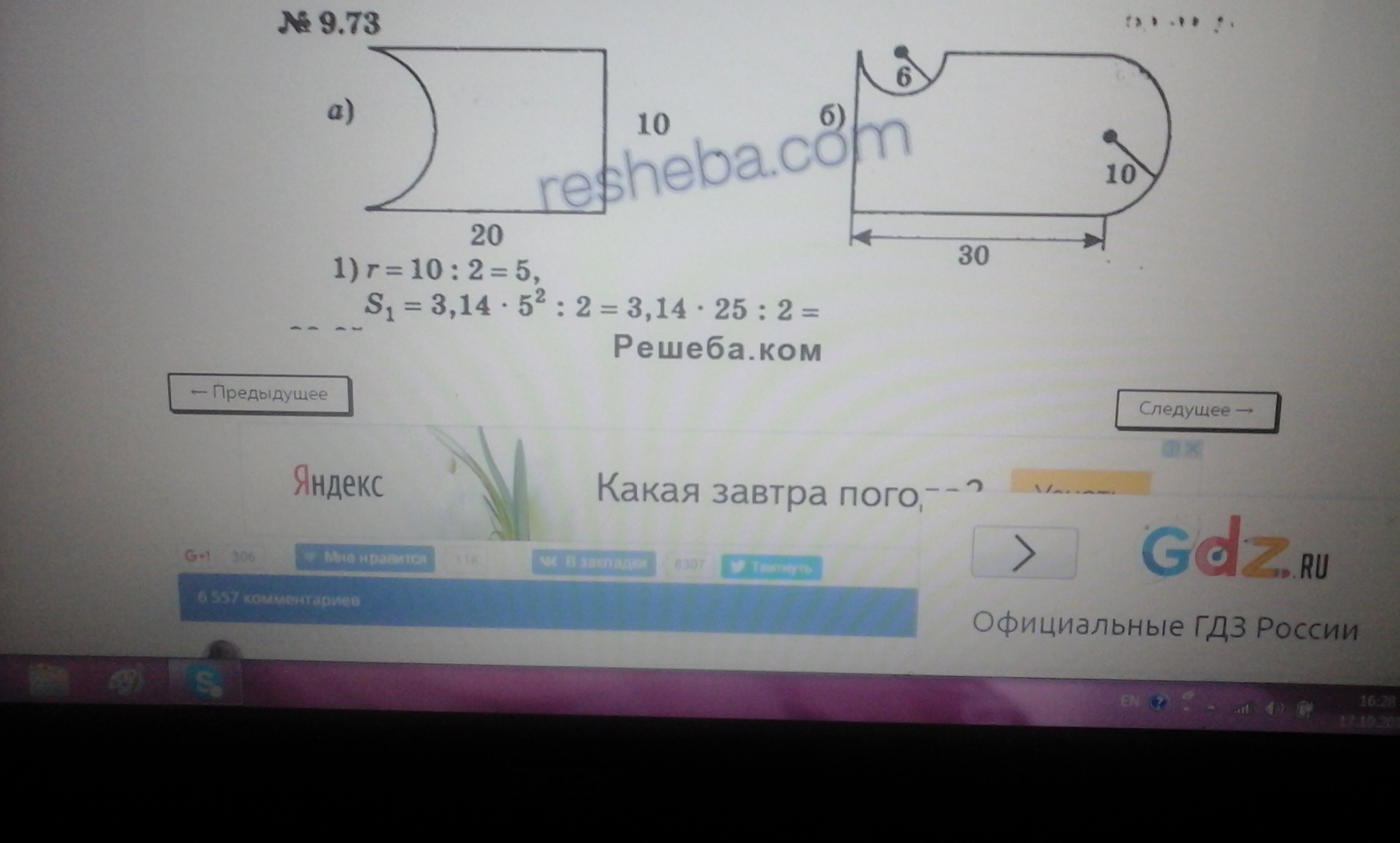 s = 1/2*π*R² = 25/2π = 12,5π - вырезано из прямоугольника.