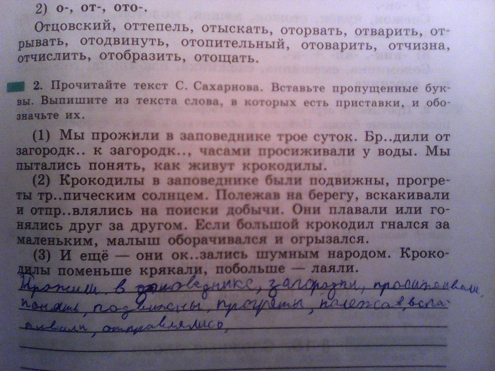 Прочитайте текст С. Сахарнова. Вставьте пропущенные буквы. Выпишите из текста слова, в которых есть приставки, иобозначти их.