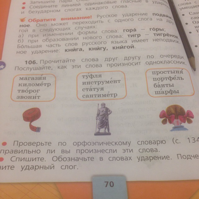 Прочитайте слова друг друга по очереди. Послушайте, как эти слова произносит одноклассник. Проверьте по орфоэпическому словарю, правильно ли вы произнесли эти слова. Спешите. Обозначьте в словах ударение. Подчеркните ударные слог.