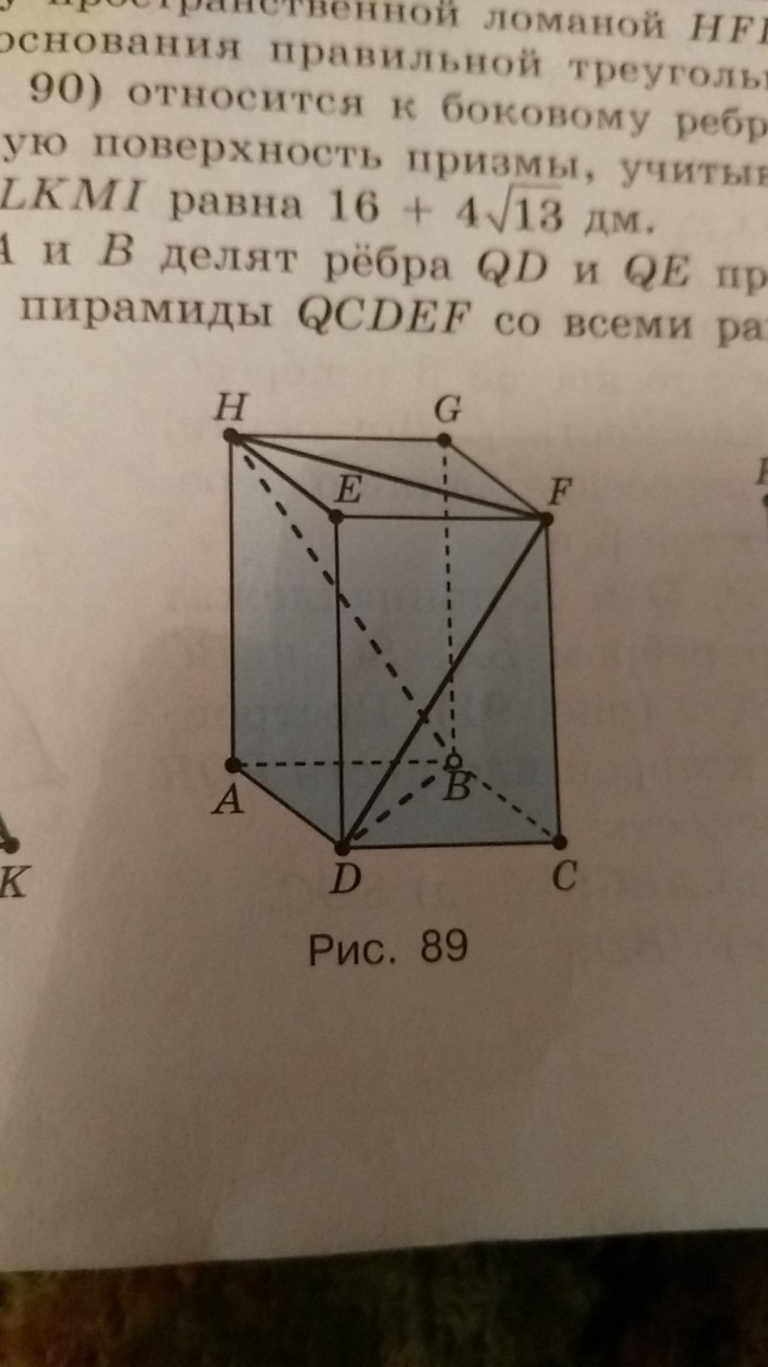 основанием прямоугольного параллепипеда ABCDHGFE является квадрат ABCD со стороной 6 см, а боковое ребро AH параллелепипеда равно 8 см. найдите длину пространственной ломаной HFDBH