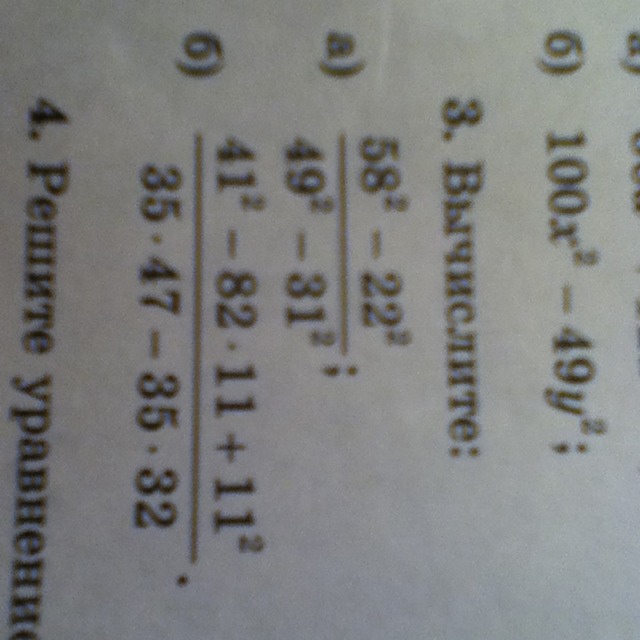 а) (58^2-22^2)/(49^2-31^2)=(3364-484)/(49^2-31^2)=2880/(2401-961)=2880/1440=2