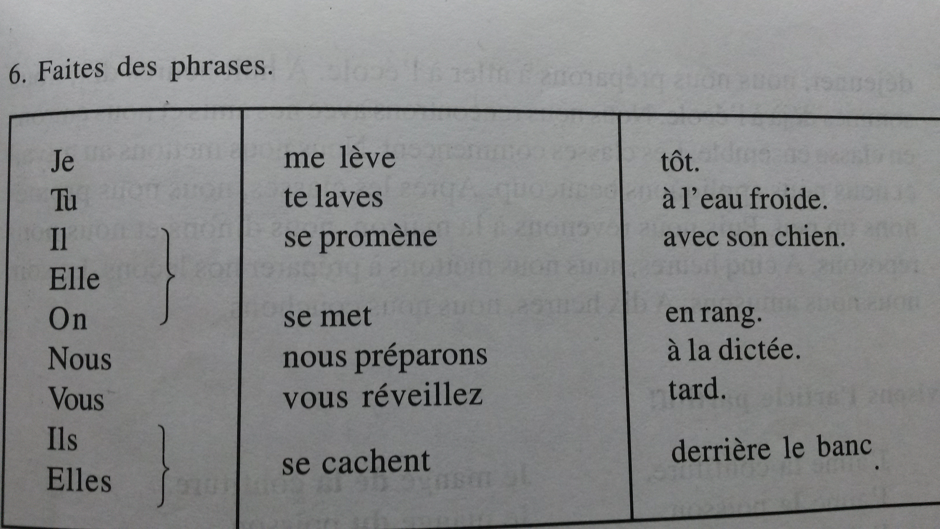 Tu te laves à l'eau froide.(ты умываешься в холодной воде)