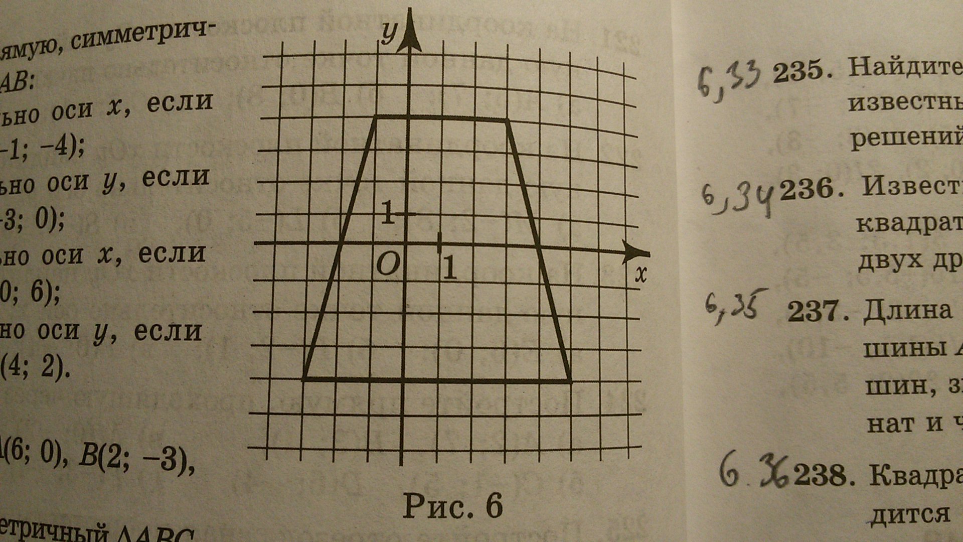 а)координаты вершин изображенного четырех угольника.б)координаты точек,в которых стороны четырех угольника пересикаются оси координат.в)координаты вершин четырехугольника,расположенного выше нарисоаанного на 4 еденицы.г)координаты вершин четырех угольника,расположенного левее нарисованного на 3 единицы.Очень прошу помогите!!!!!
