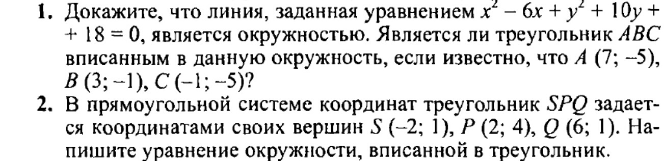 Для проверки, вписан ли треугольник с заданными координатами вершин в эту окружность, надо подставить координаты в полученное уравнение: