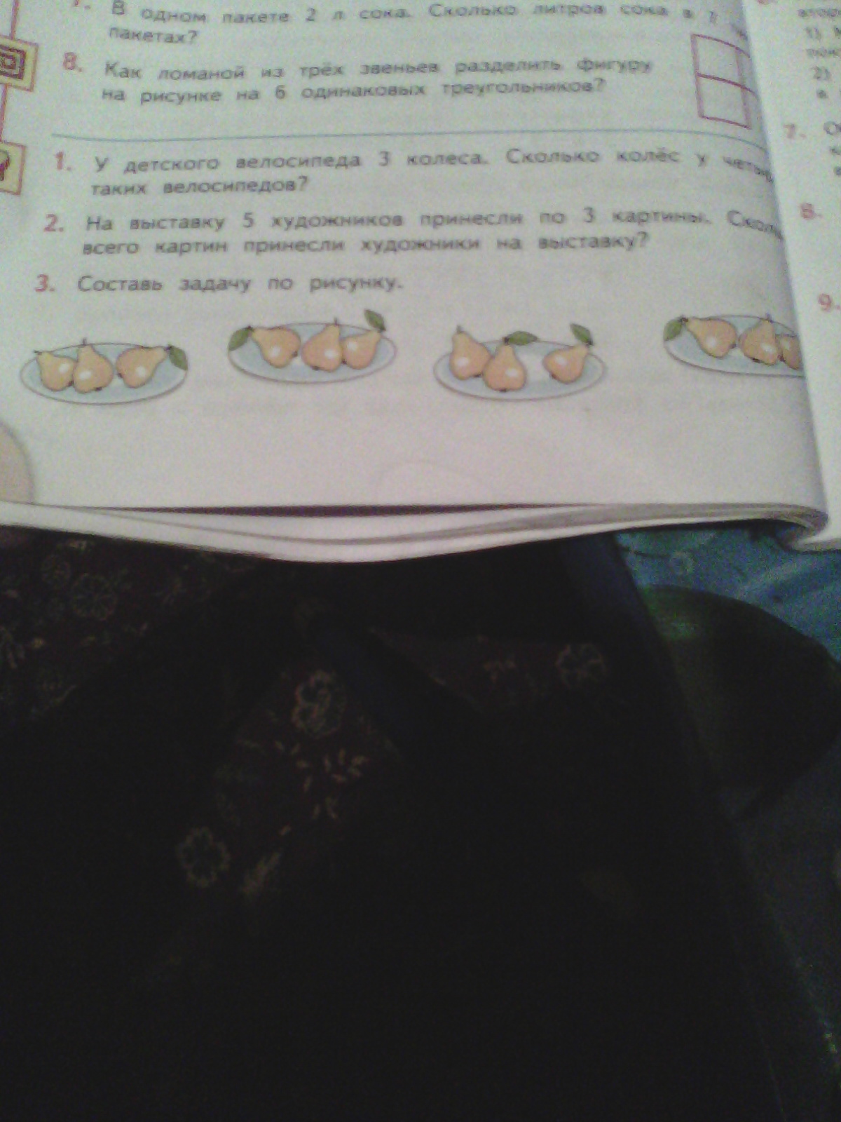 пришли гости. мама положила всем гостям по 4 тарелки. в каждой тарелке по 3 груши.