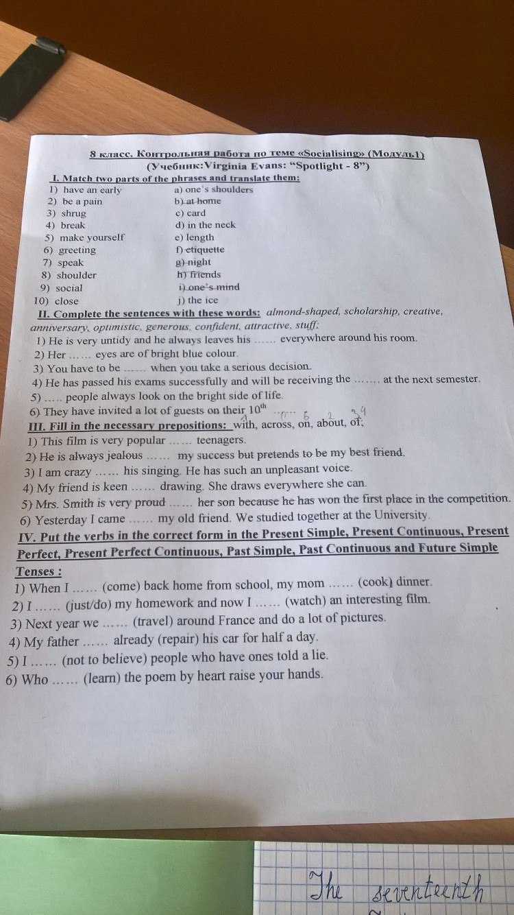 1)with; 2) about; 3)about; 4)on; 5)of; 6)across