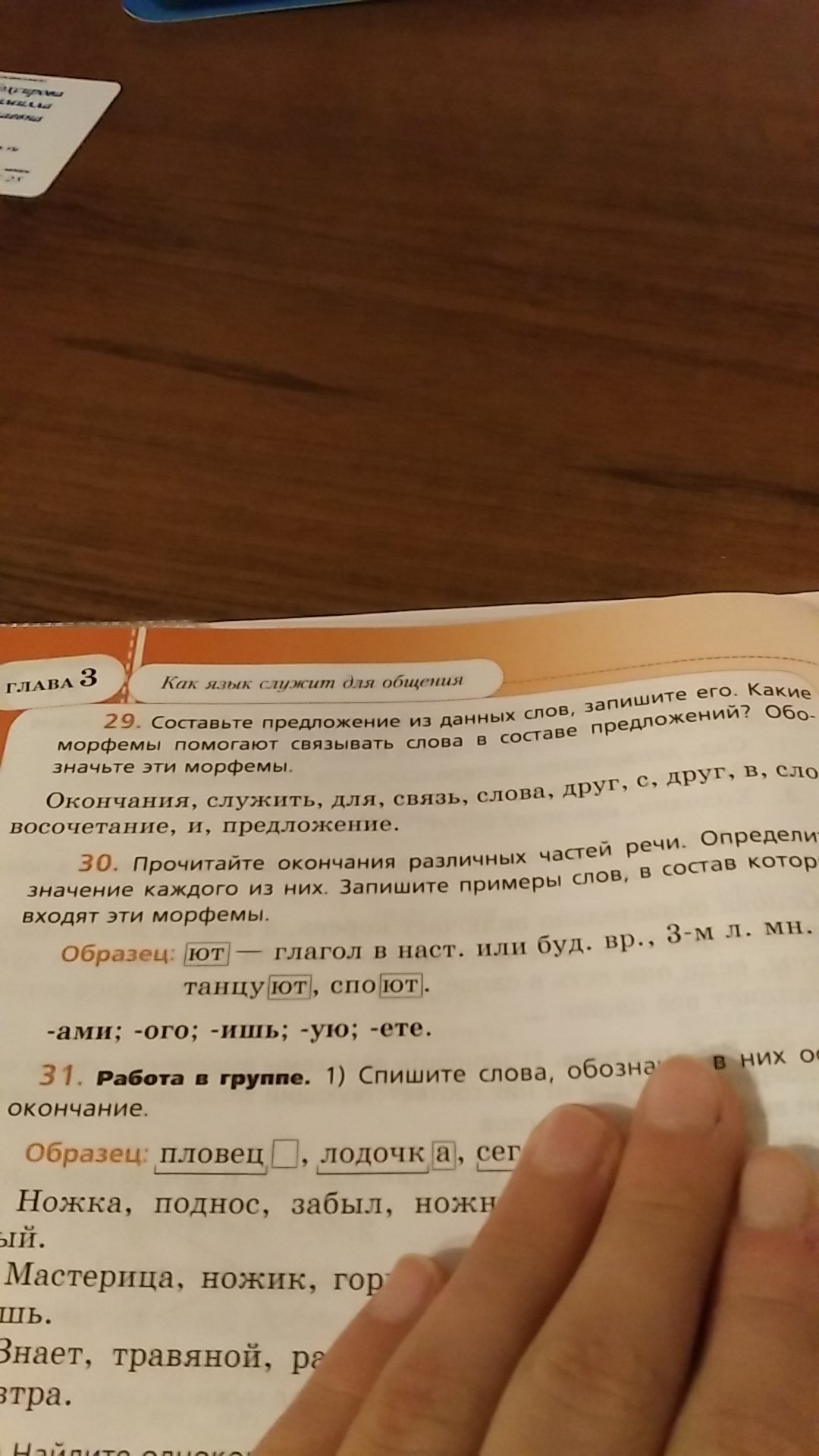 составьте предложение из данных слов,запишите его.Какие морфемы помогают связывать слова в составе предложений ?Обозначьте эти морфемы