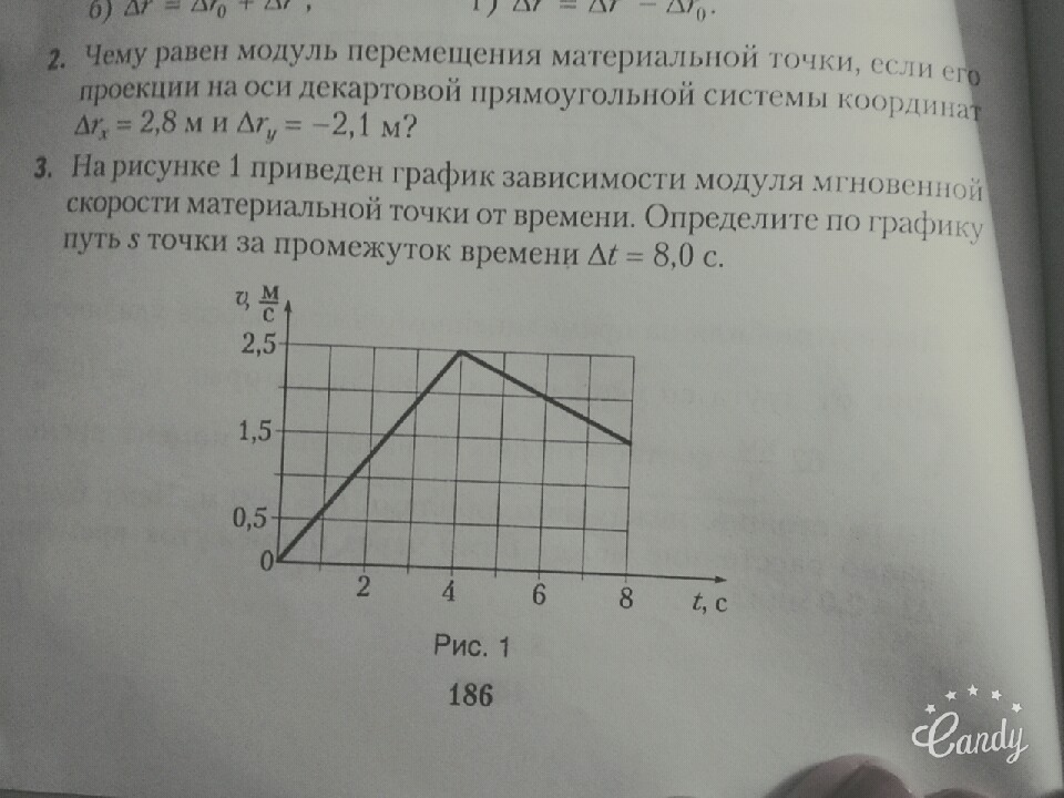 на рисунке 1изображен график зависимости модуля мгновенной скорости материальной точки от времени. Определите по графику путь s за промежуток времениТ=8с