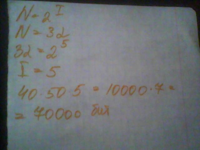 Для записи текста использовал 32 символьный алфавит каждая страница содержит 40 строк по 50 символам какой объем информации содержит 7 страниц текста