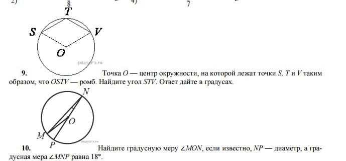 1.Проведем радиус ОТ, тогда ромб будет разбит на 2 равносторонних треугольника, у которых все углы по 60 градусов. То разбивает угол STV