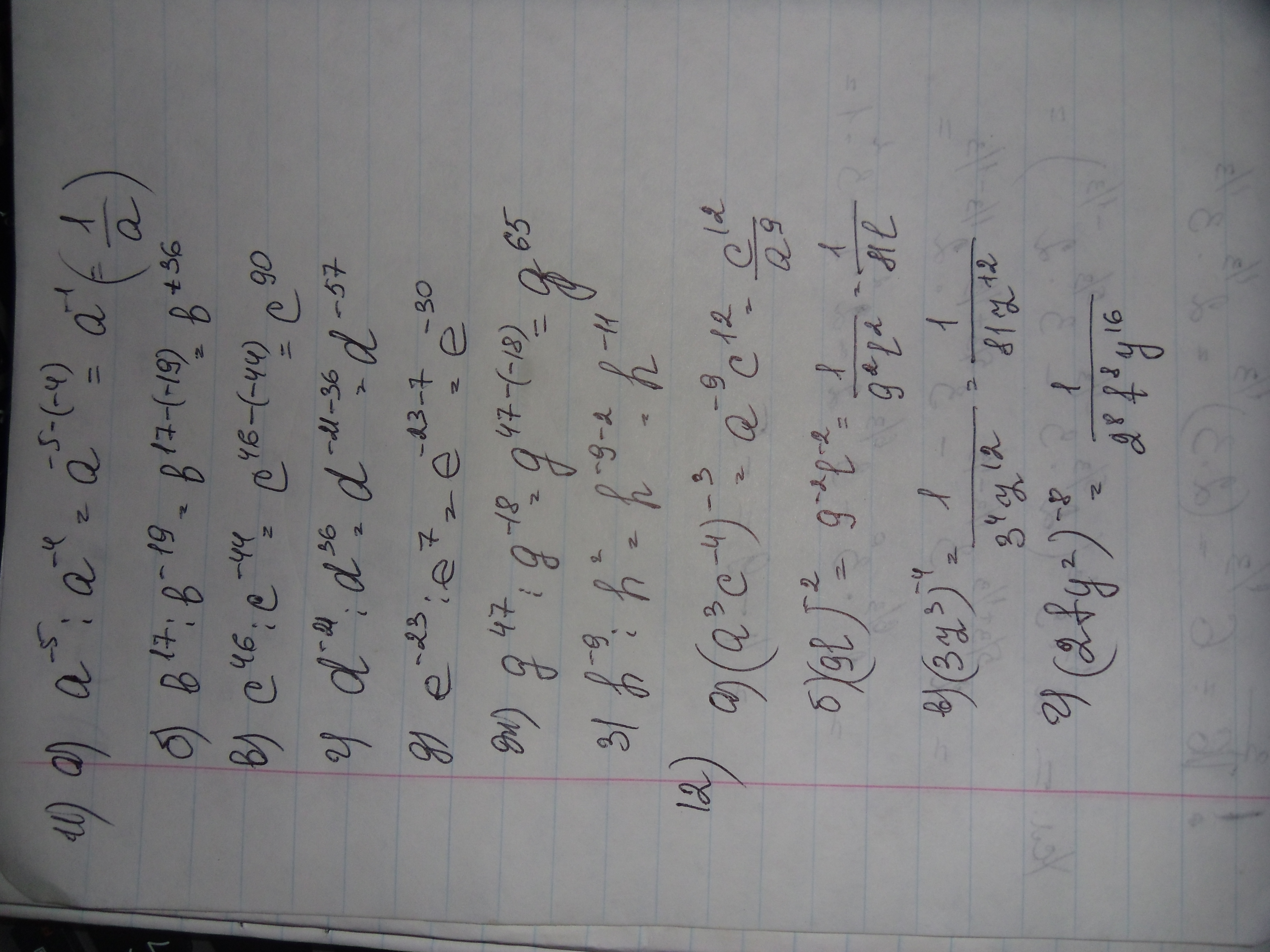 а) а⁻5:а⁻⁴=а⁻⁵⁺⁴=а⁻¹=1/а