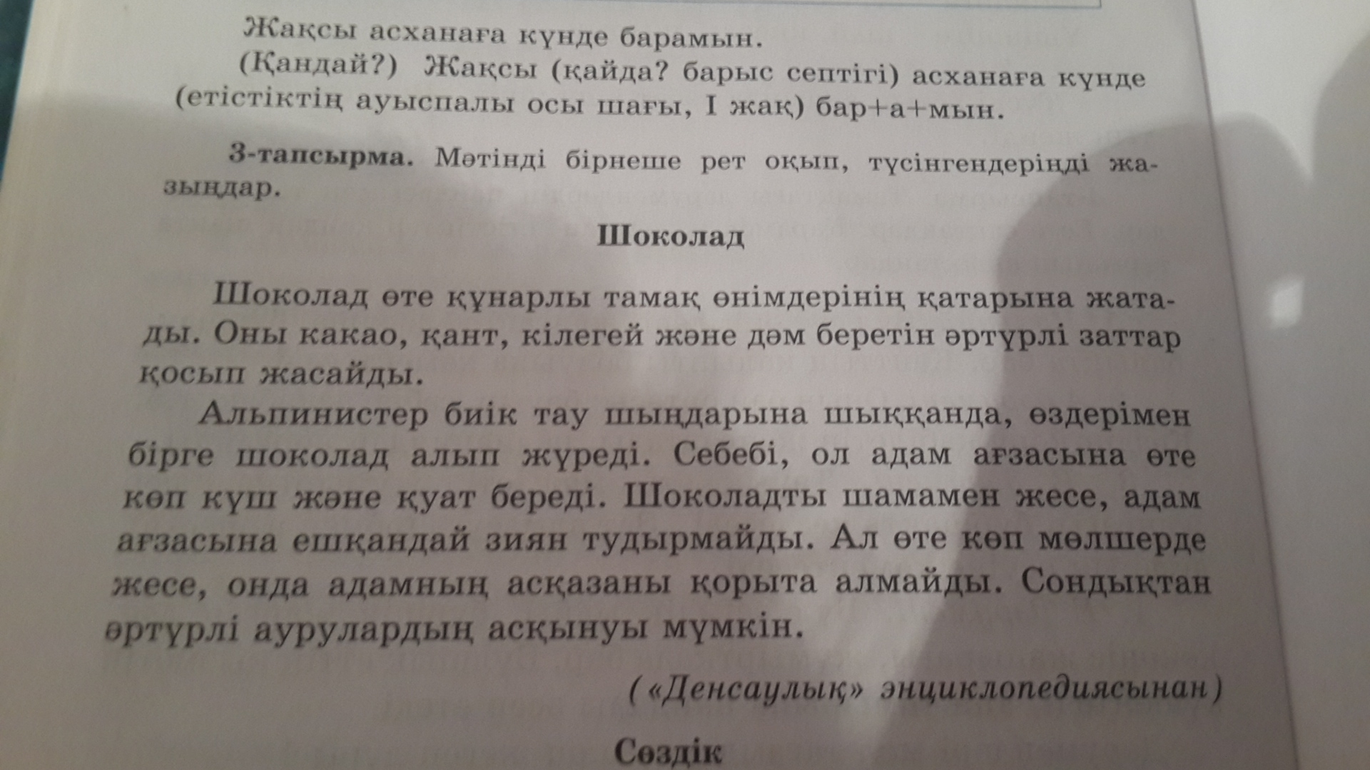 Шоколад құнарлы тағам. Шоколадты какао, қант жане басқа заттардың қоспасынан жасайды.