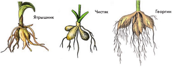 Нередко, например у георгина или топинамбура, одновременно с придаточными корнями утолщаются и нижние части побегов (
