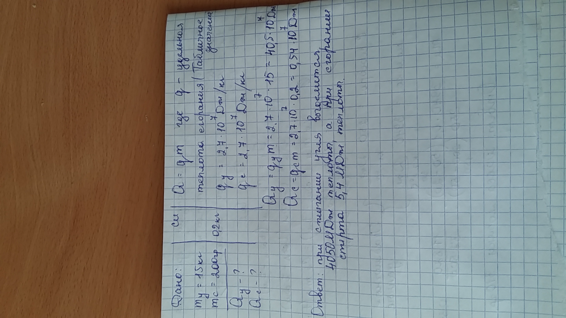 какое количество теплоты выделяется при полном сгорании древесного угля массой 15 кг. ; спирта массой 200 г.