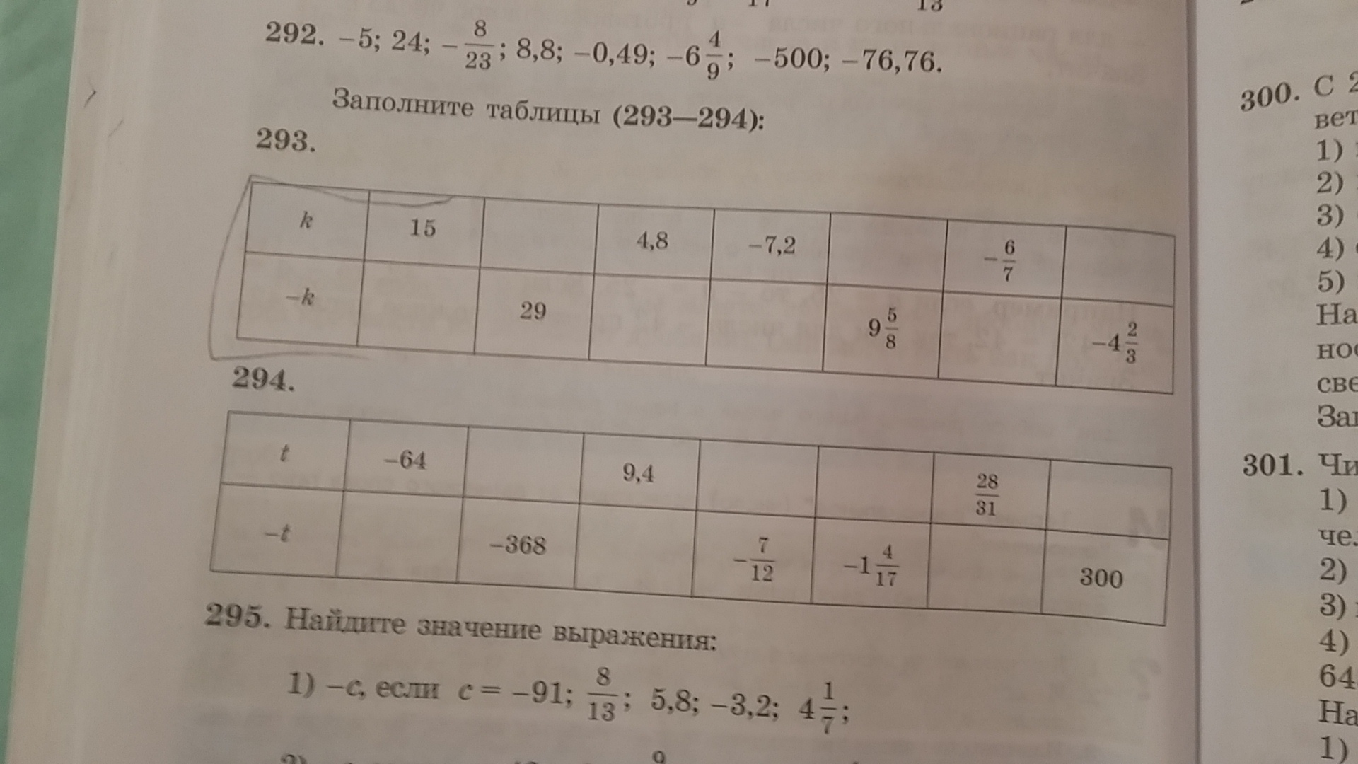 В пустых ячейках нужно записать числа с противоположным знаком, если к=15, то -к= -15