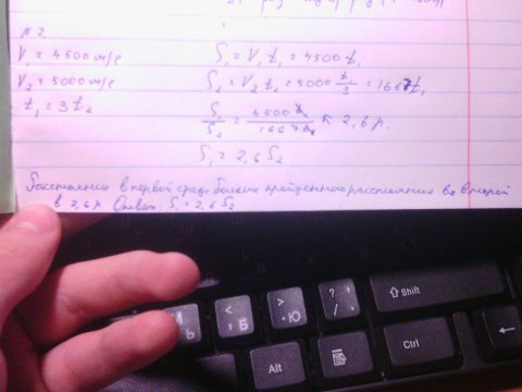 Звук распространяется в первой среде со скоростью 4500 м/с ,во второй среде со скоростью 5000 м/с. Время распространения звука в первой среде в 3 раза больше,чем во второй. В какой среде звук проходит большее расстояние,во сколь раз?