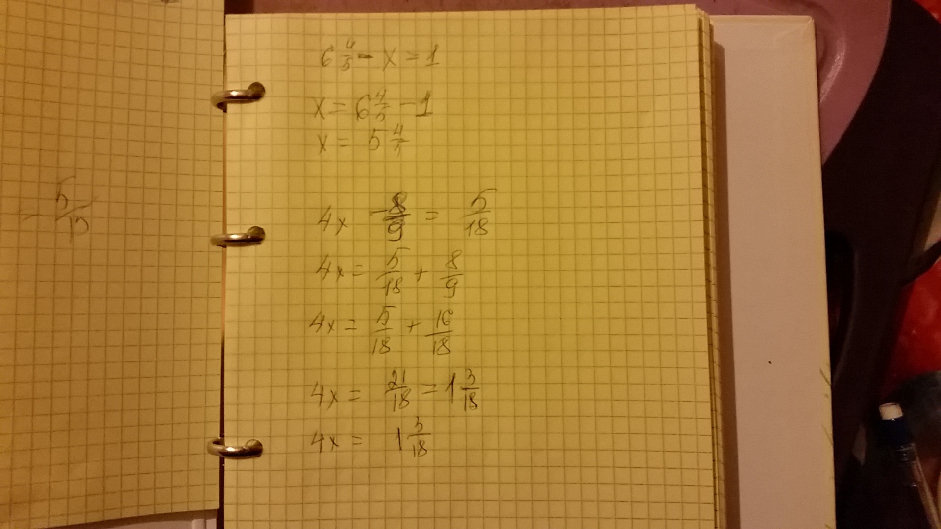 шесть целых четыре пятых минус икс равно 1, 4 и X минус 8 целыхсемь девятых равно пять восемнадцатых