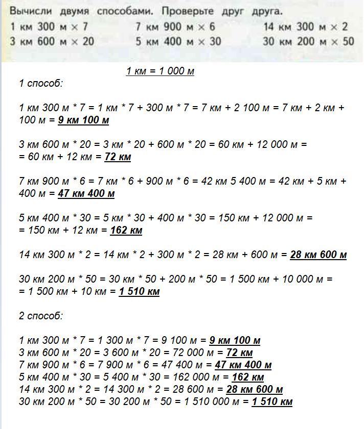 закончи вычисления вычисли двумя способами проверьте друг друга 1 километров 300 метров умножить на 7 и 3 километров 600 метров умножить на 27 километров 900 метров умножить на 6 километров 400 метров умножить на 30 14 метров 200 метров умножить на 2 и 30 километров 200 метров умножить на 50