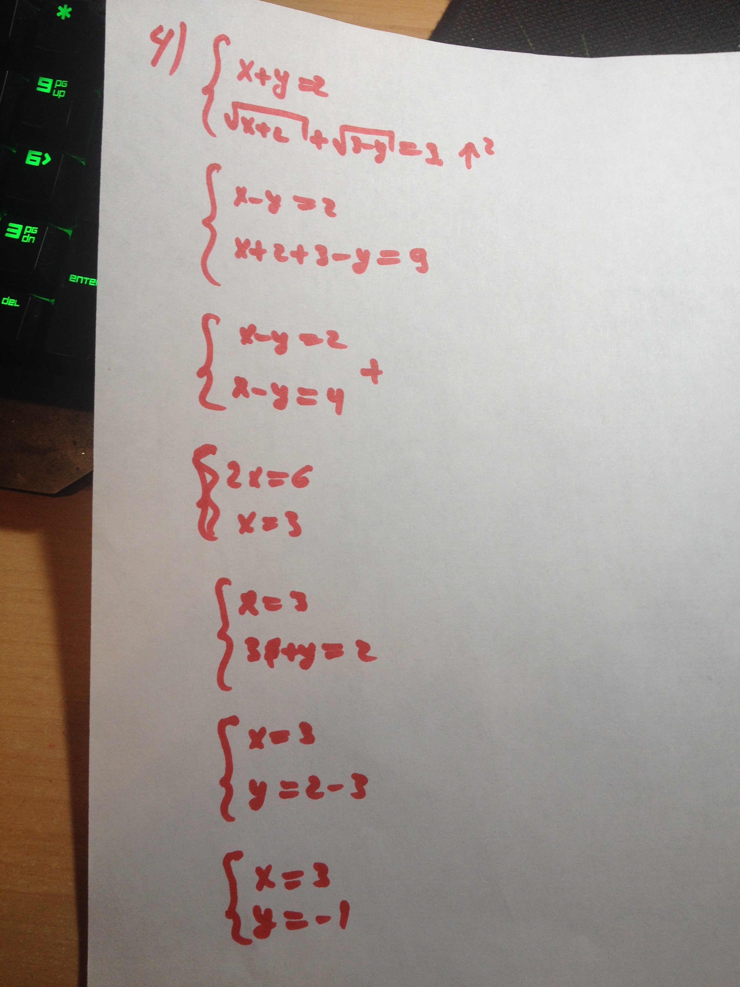 Первое аналог второго, все домножаешь на квадрат и после этого складываешь эти две системы, потом ты находишь x и после того как ты нашел x вставляешь его в любую начальную систему и находишь Y