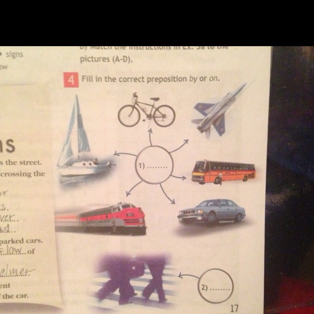1.By ship, by bicycle, by plane, by bus, by car, by train. 2. On foot