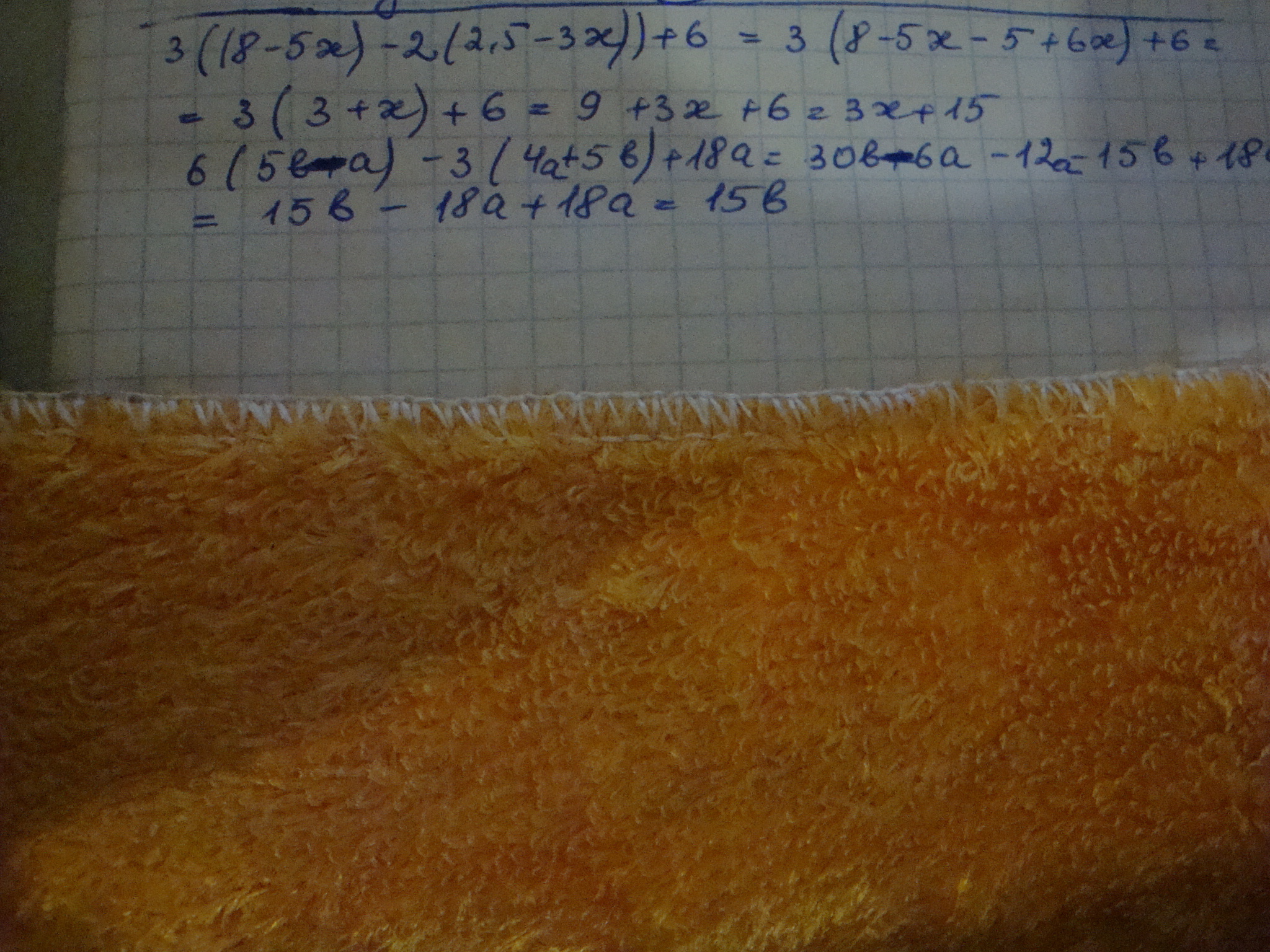 3((8-5x)-2(2,5 -3x))+6