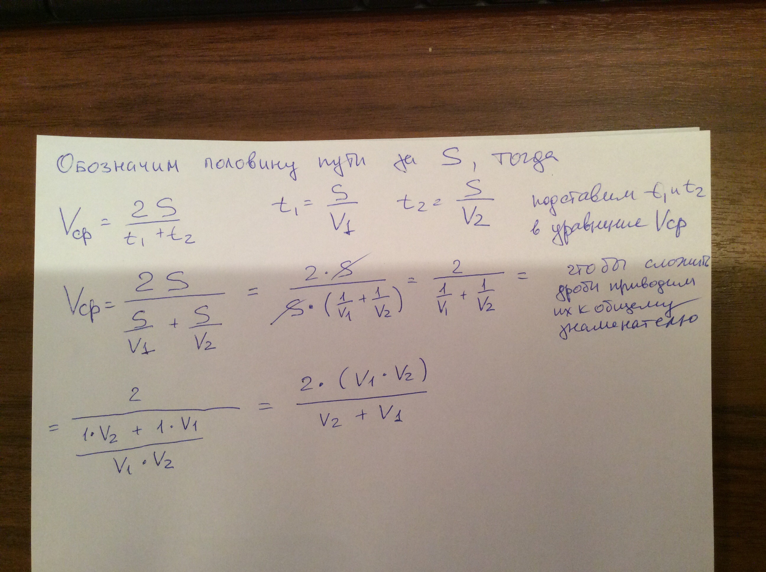Объясните откуда взелась формула(Vср=2*V1*V2/V1+V2