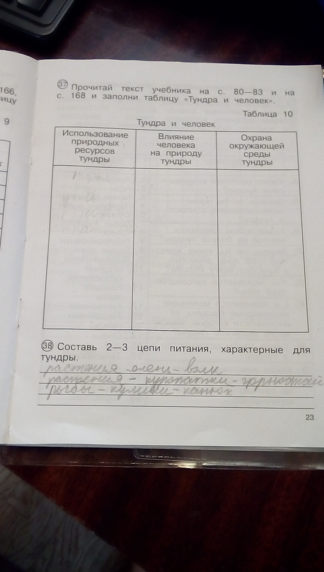 тундра и человек Заполните пожалуйста таблицу Очень срочно надо если вы еще знаете цепь питания для тундры напишите срочеонадо