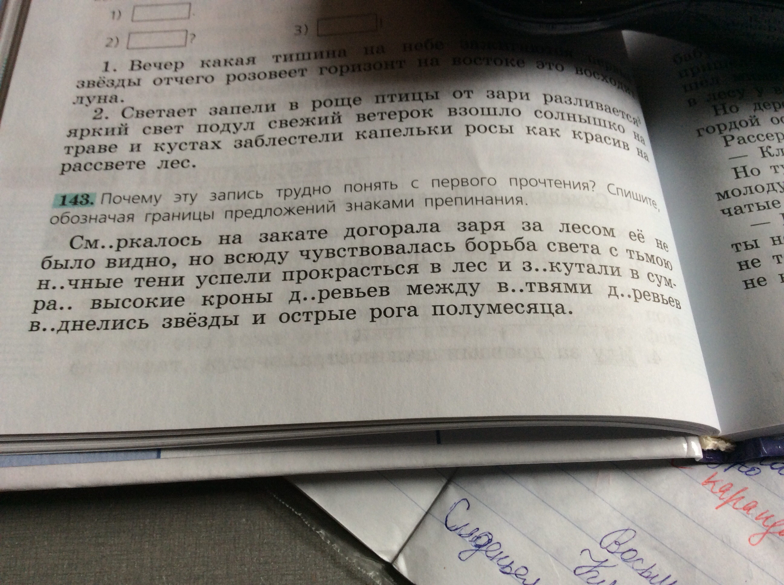 Смеркалось.На закате догорала заря. За лесом ее не было видно,но всюду чувствовалась борьба света с тьмою. Ночные тени успели прокрасться в лес и закутали в сумрак высокие кроны деревьев. Между ветвями деревьев виднелись звезды и острые рога полумесяца.