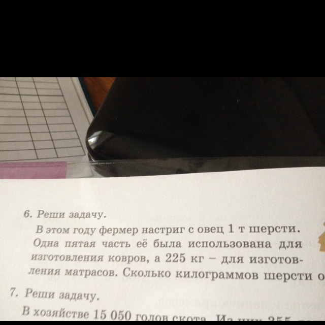 В этом году фермер настриг с овец 1 т шерсти одна пятая часть её была для ковров а 225 кг для матрасов сколько кг шерсти сталось