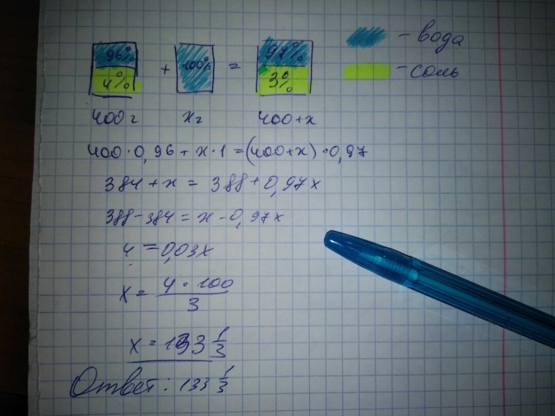 сколько воды нужно добавить к 400 г содержащего 4% соли чтобы получился раствор содержащий 3% соли