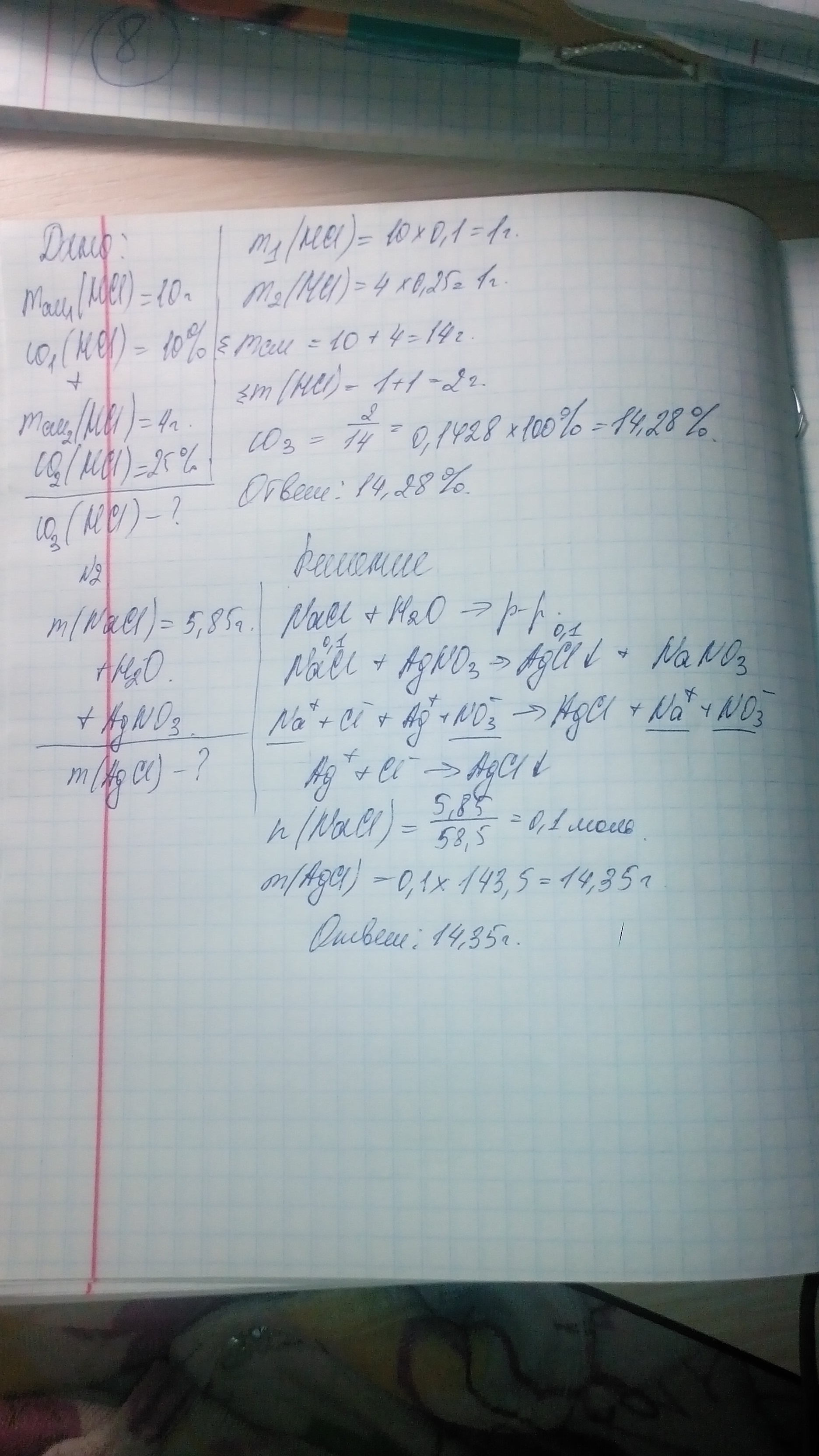 к раствору массой 10 г с массовой долей хлороводорода 10% добавили раствор 4 г с массовой долей хлороводорода 25% . Определите массовую долю HCI в образовавшемся растворе