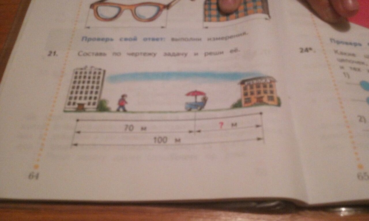 Между домами расстояние 100 метров. 1-ый прохожий прошёл до мороженного 70 метров. Сколько прошёл второй?