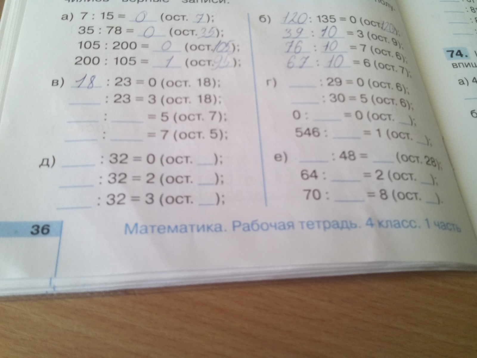 д) 0÷32=0 ост