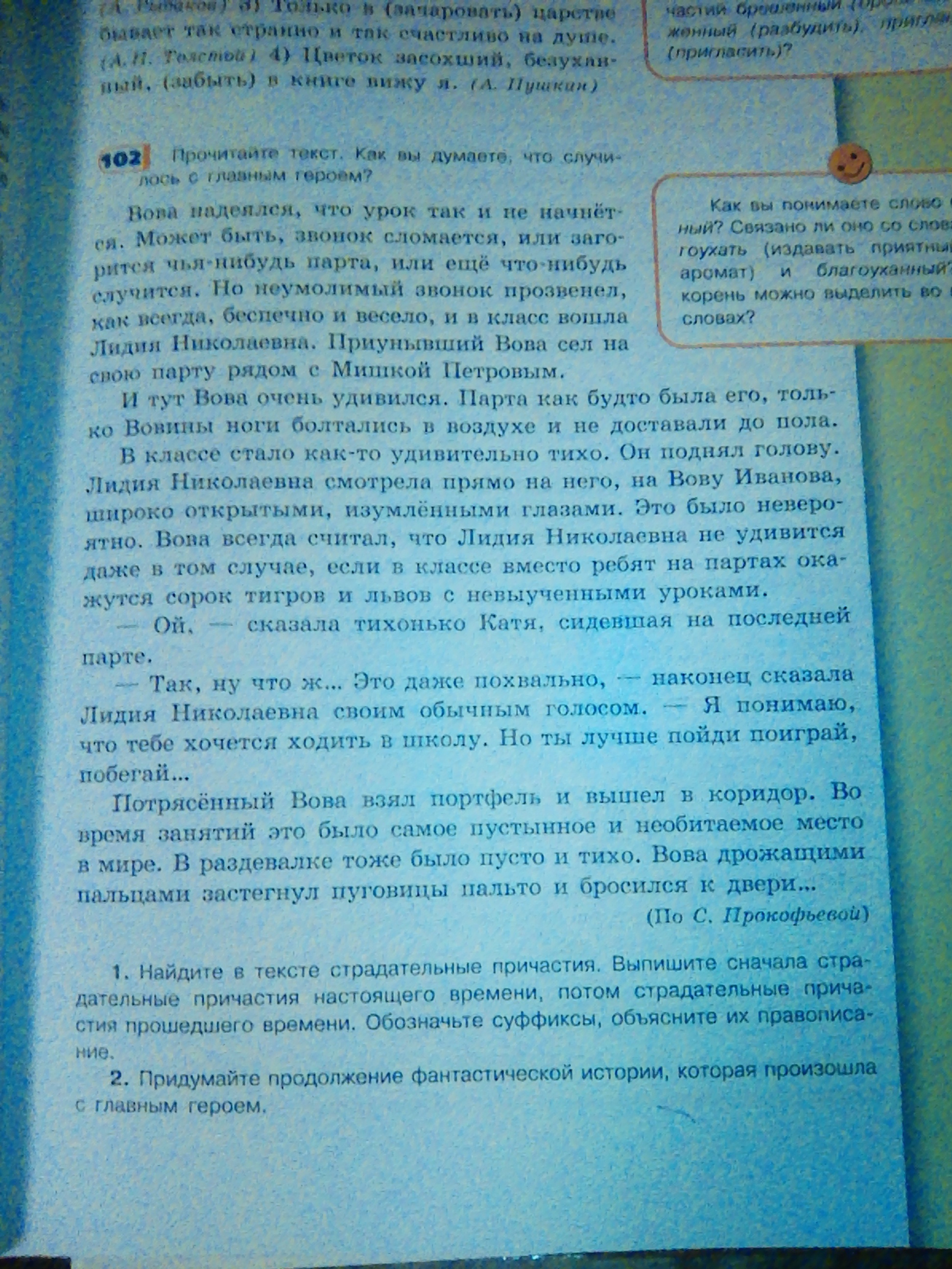 главному герою была стыдно и весела потому что учительнеца посмотрело на нево прямо и он был один в коридори школы