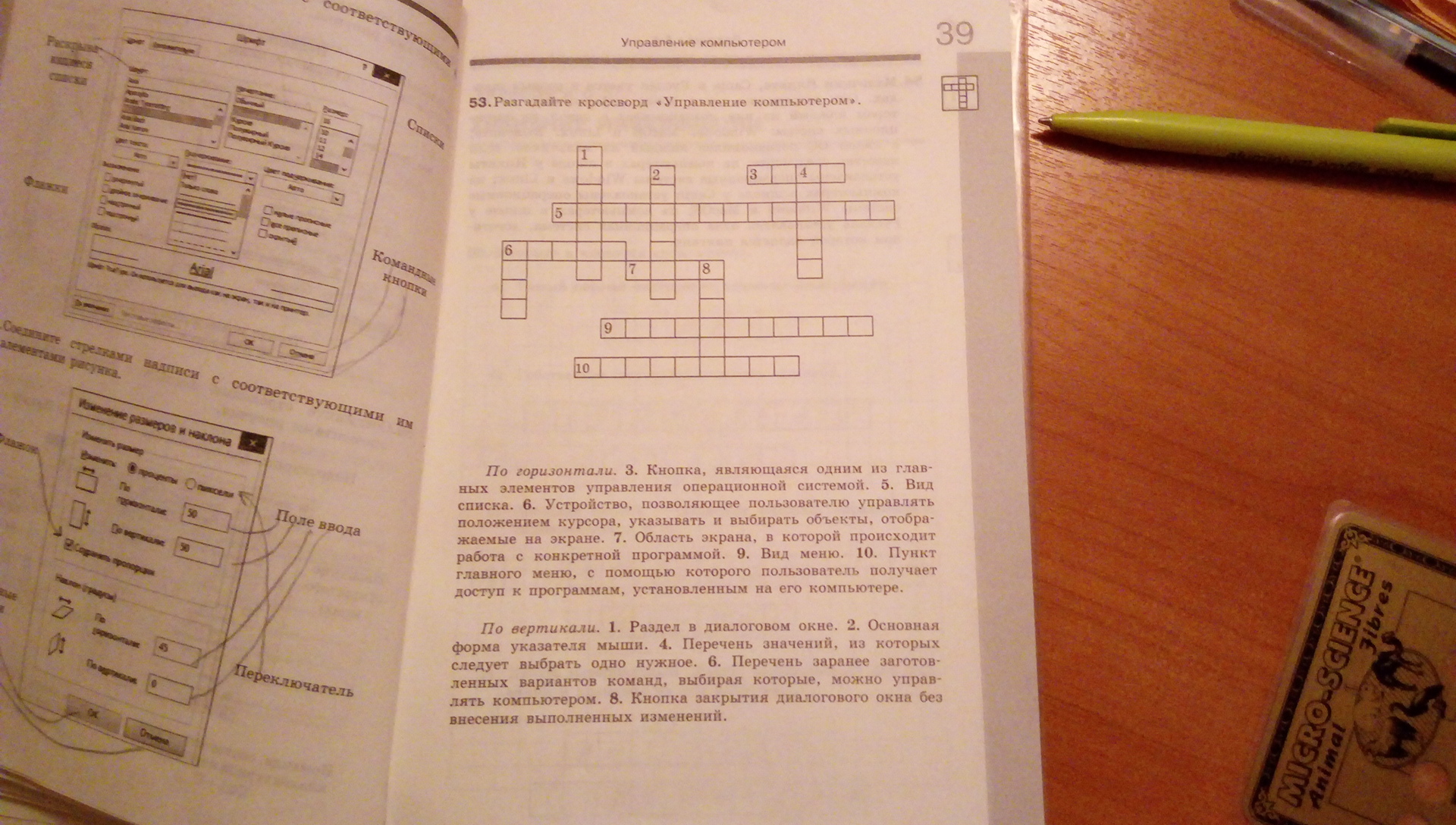 По вертикали: 1. Вкладка. 2. Стрелка. 4. Список. 6. Меню. 8. Отмена.