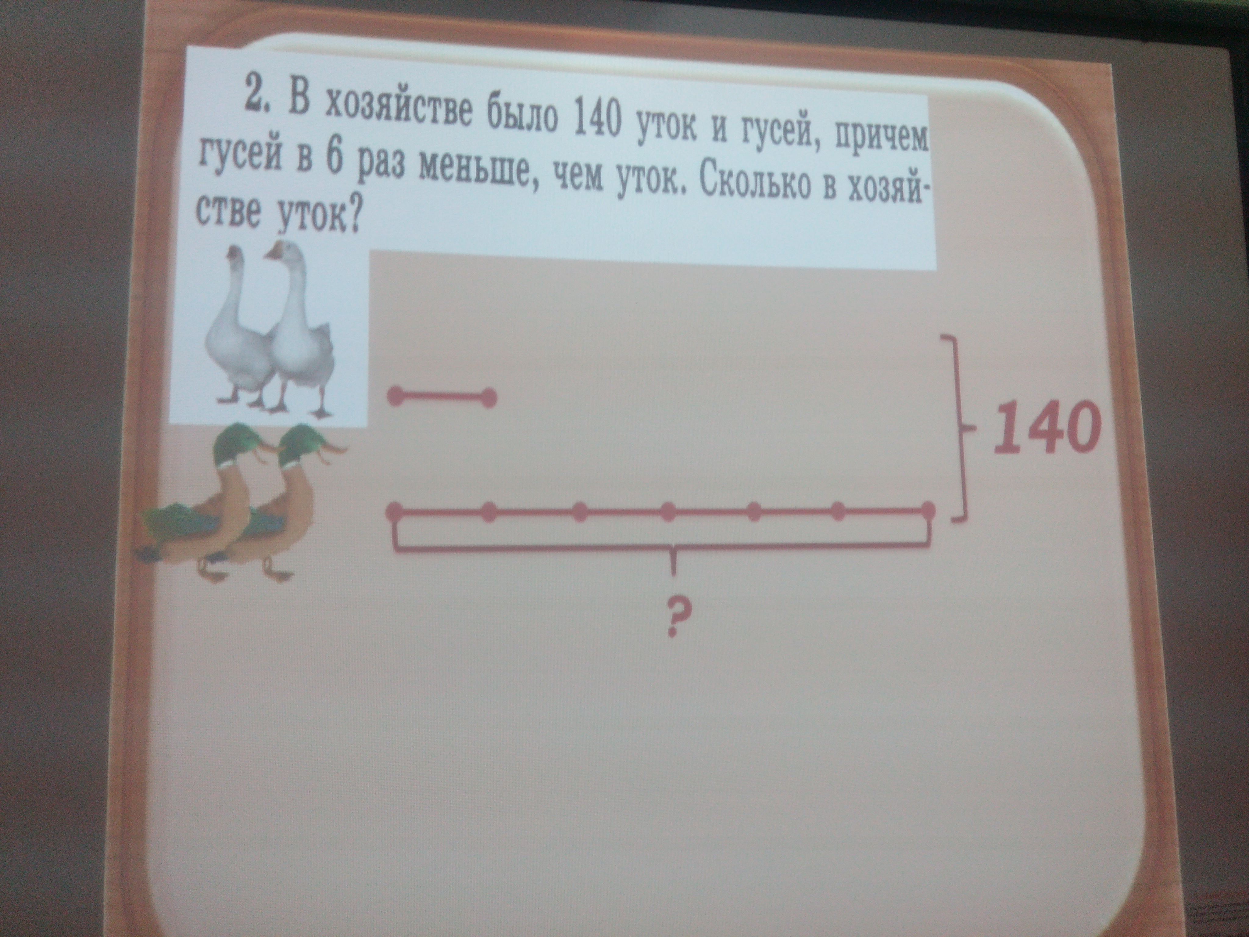 в хозяййстве было 140 уток и гусей, причём гусей в 6 раз меньше чем уток. Сколько в хозяйстве уток?